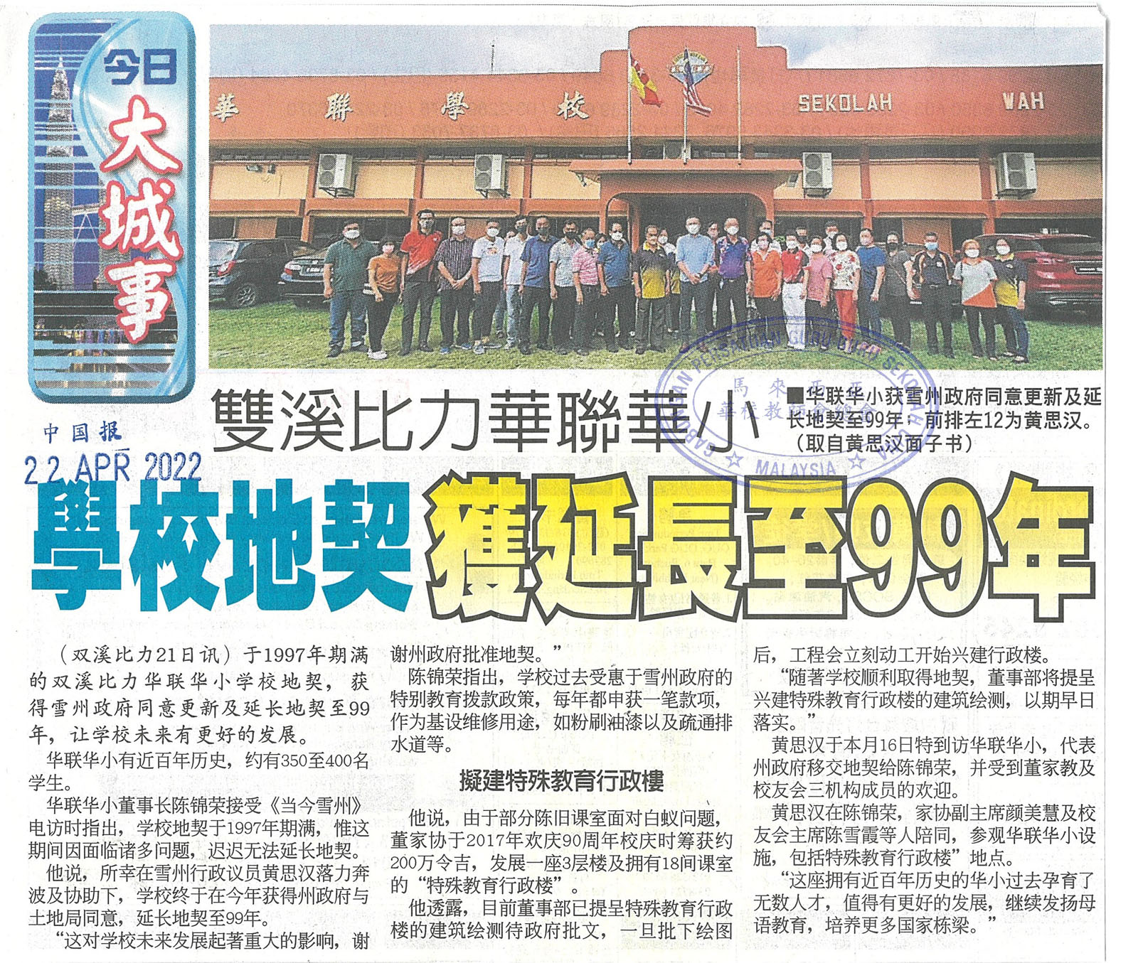 双溪比力华联华小 学校地契获延长至99年