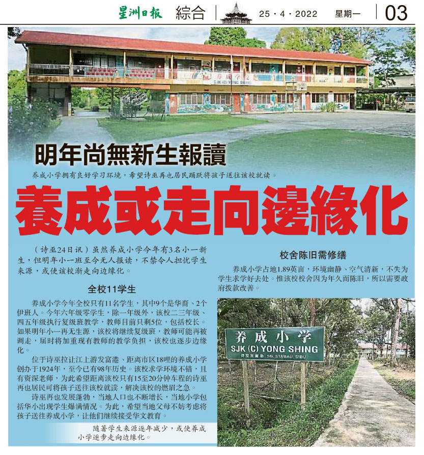 明年尚无新生报读 养成华小或走向边缘化