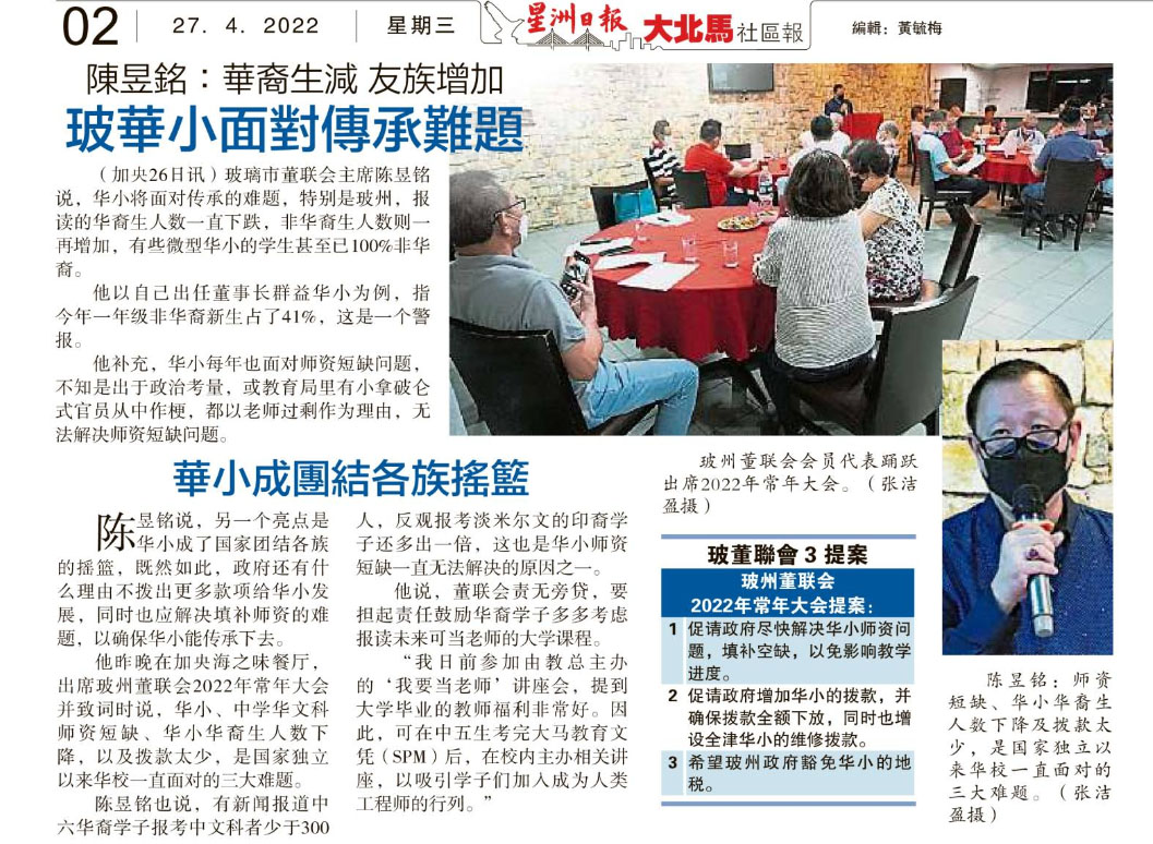 陈煜铭:华裔生减 友族增加 玻华小面对传承难题
