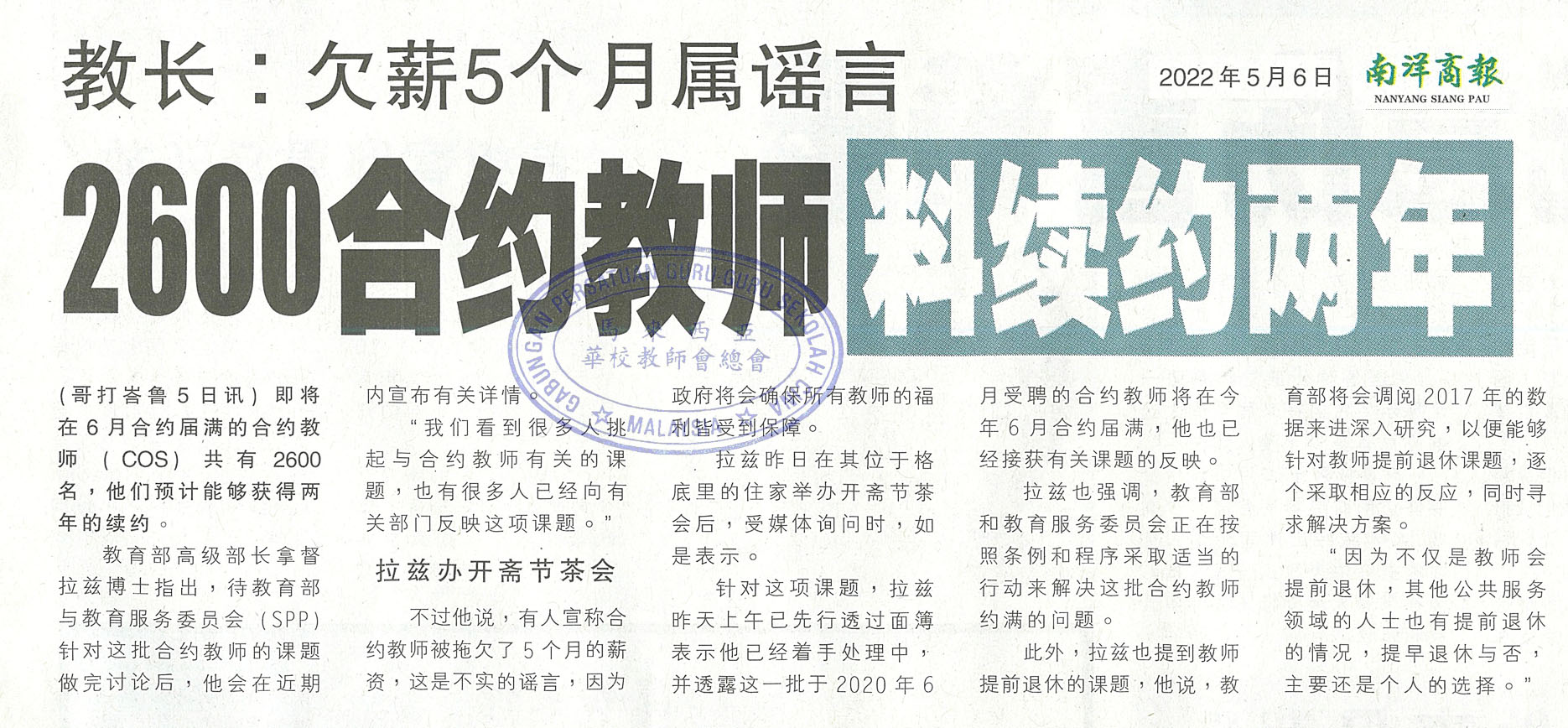 教长:欠薪5个月属谣言 2600合约教师料续约两年