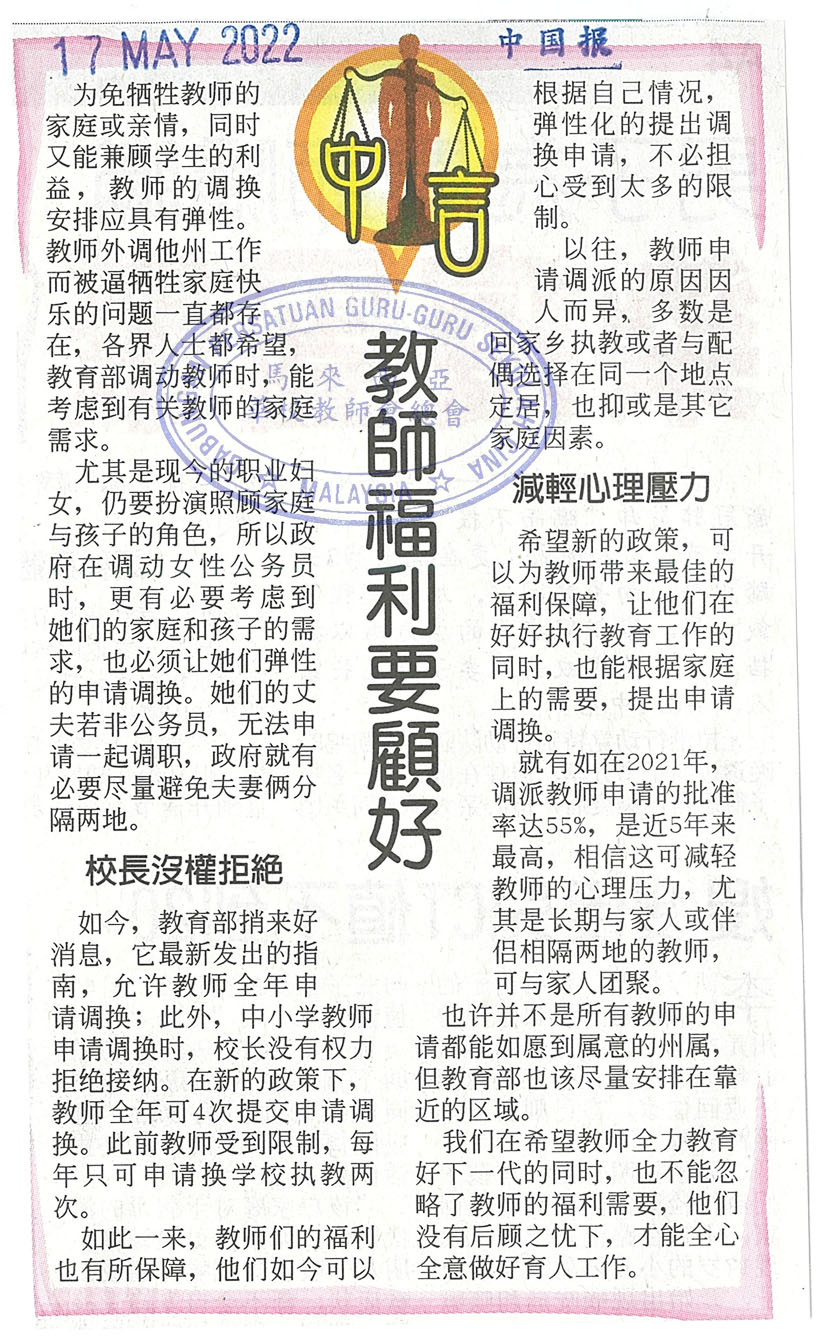 上一篇文章: 1年4次申请太频密 教总:影响学生及校务