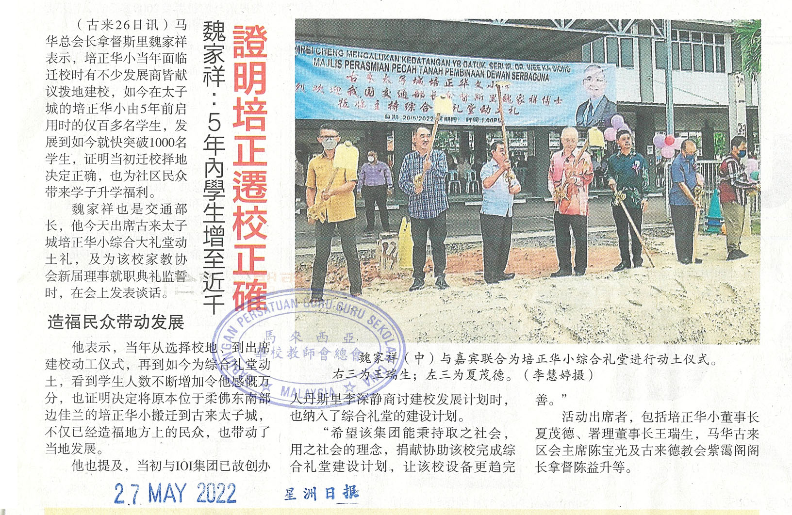 魏家祥:5年内学生增至近千 证明培正迁校正确