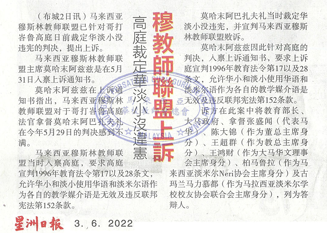 高庭裁定华淡小没违宪 穆教师联盟上诉