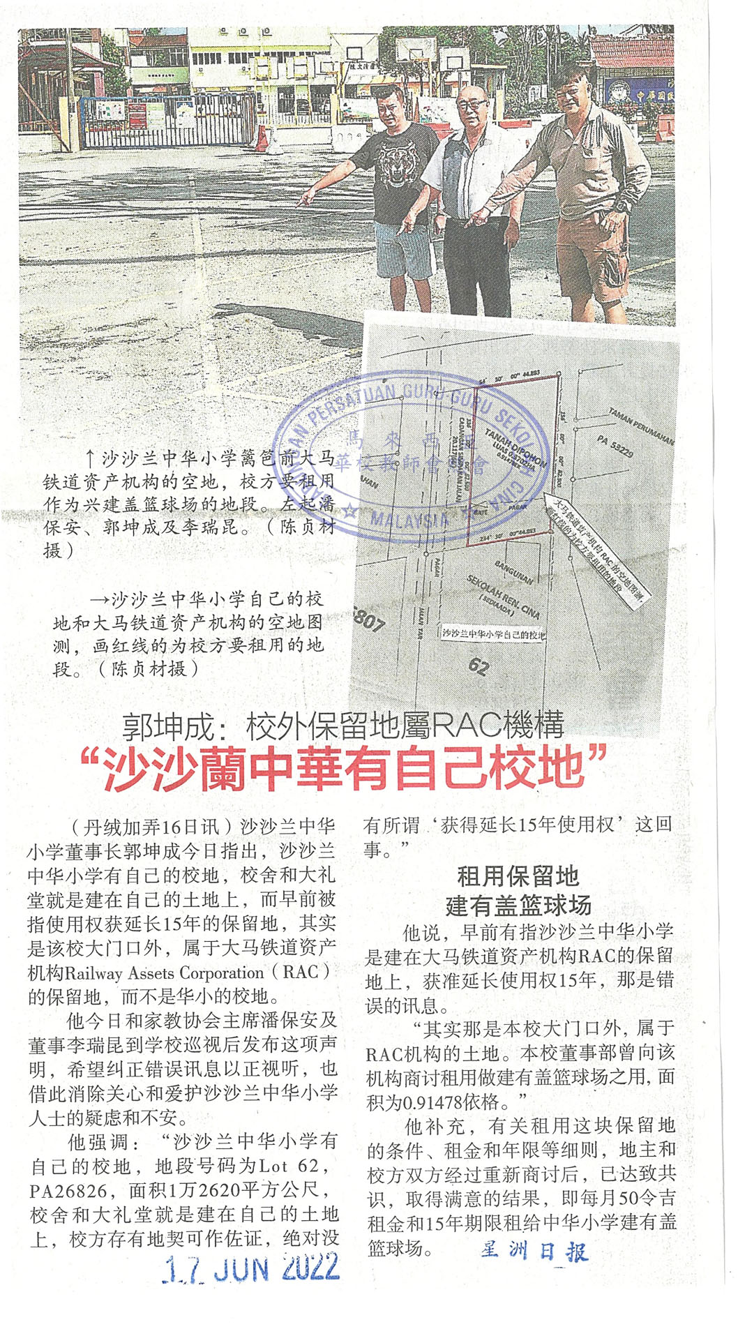 郭坤成:校外保留地属RAC机构“沙沙兰中华有自己校地”