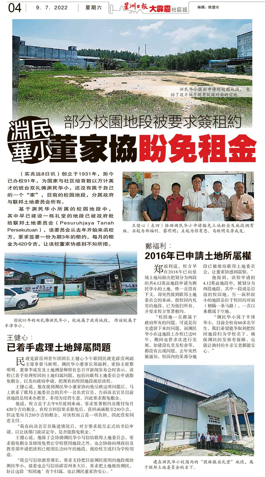 部分校园地段被要求签租约 渊民华小董家协盼免租金