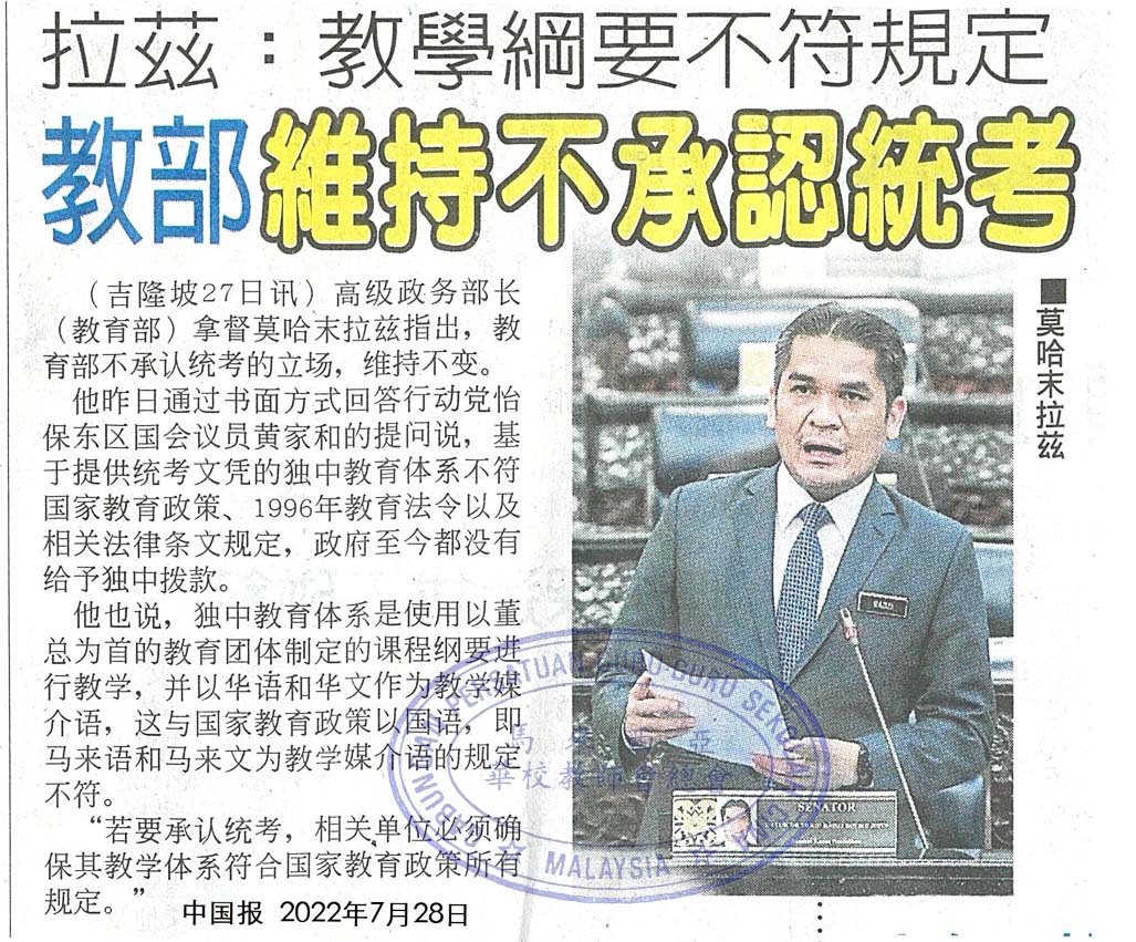 拉兹:教学纲要不符合规定 教育部维持不承认统考