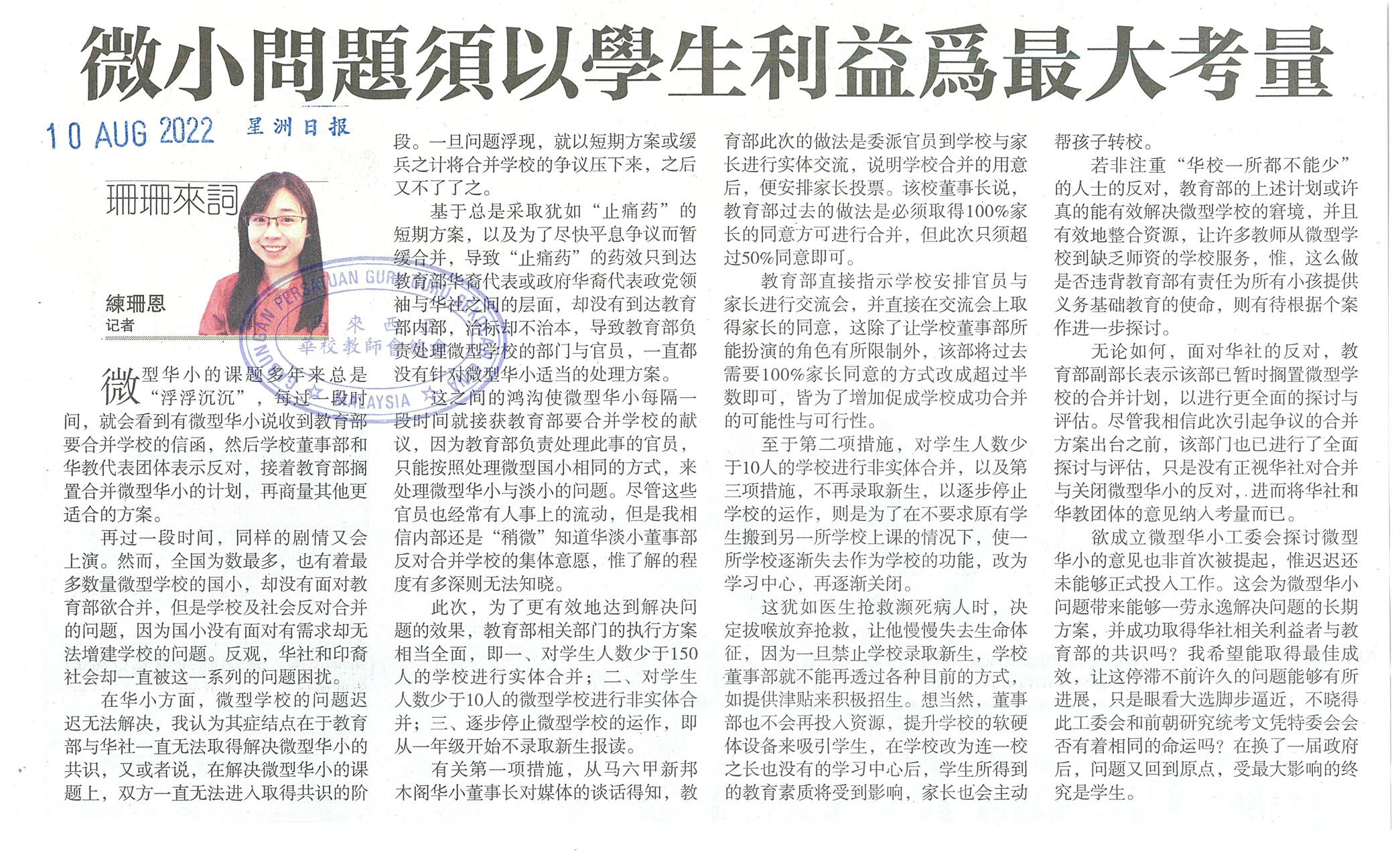 上一篇文章: 谢立意促”白纸黑字“ 阐明保留微小办学执教