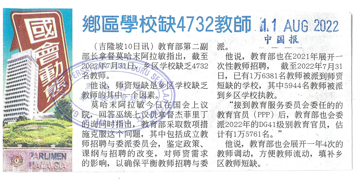 上一篇文章: 公共服务局通令 推广应用能力 官方公务须用马来文