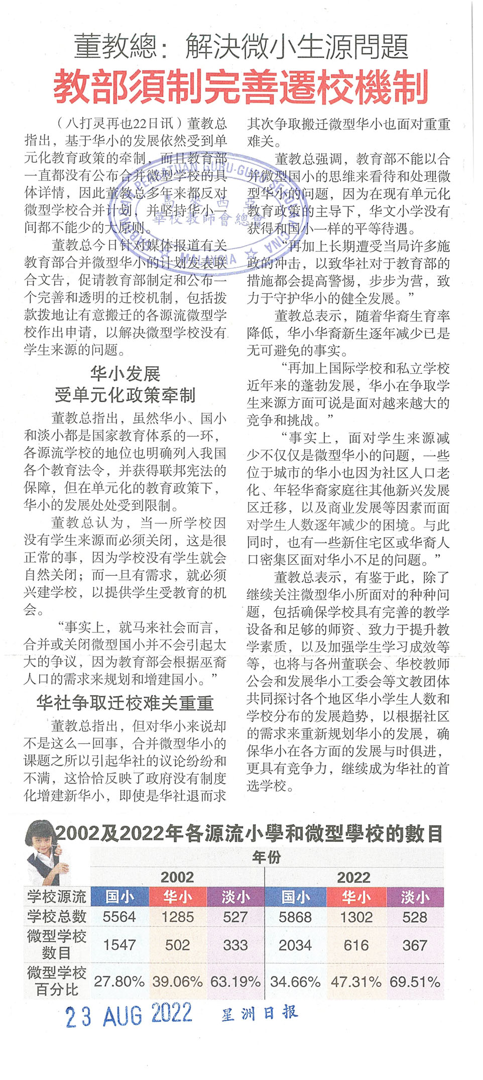 董教总:解决微小生源问题 教育部须制完善迁校机制 WhatsApp 上一篇文章: 教育部长:分3管道接收 霸凌网站接19投诉 上一页 下一篇文章: 教长:下月起逐步展开 挑110校试行“混合教室” 下一页