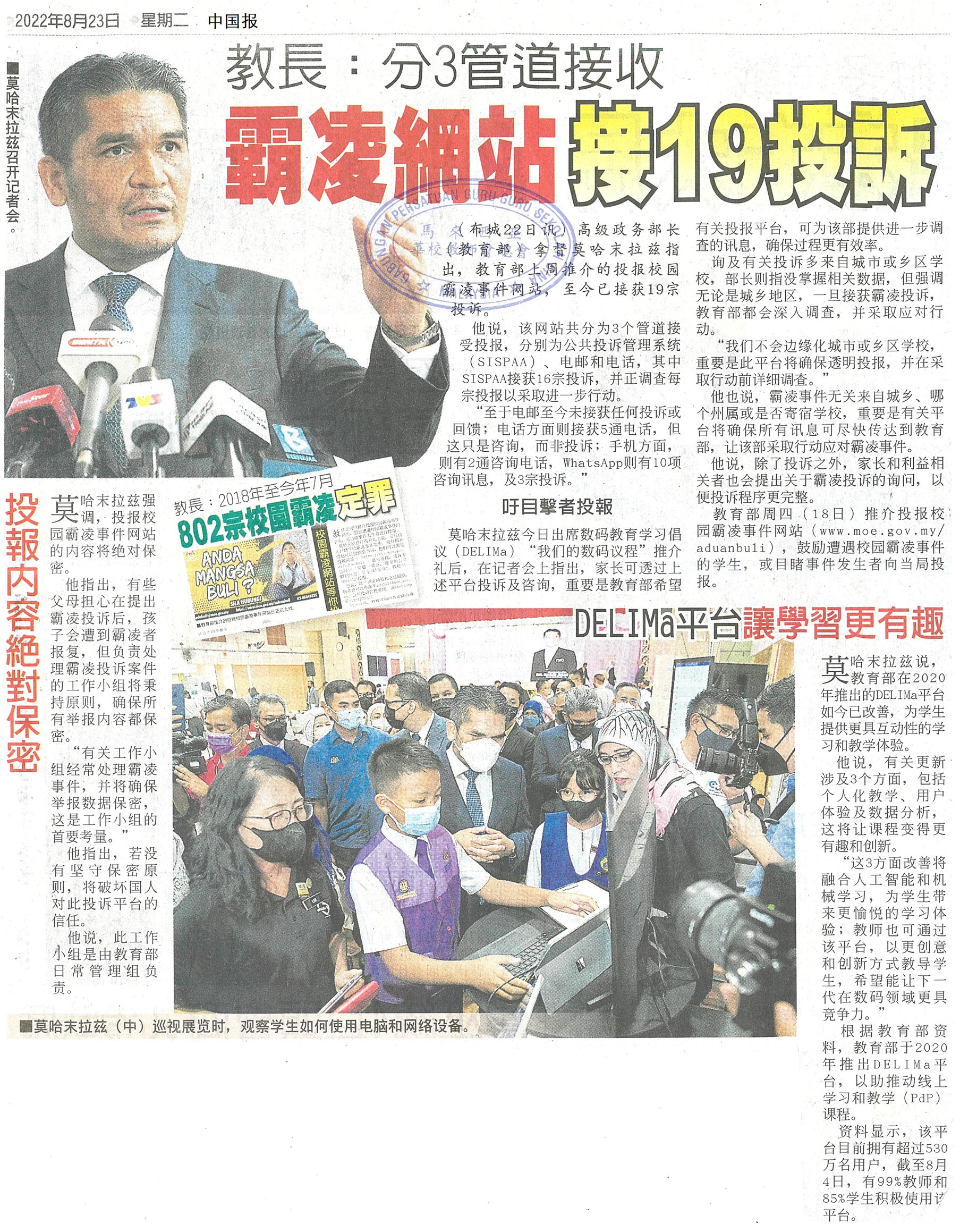 教育部长:分3管道接收 霸凌网站接19投诉 WhatsApp 上一篇文章: 豁免19.5万土地转换溢价金 育英学校仅缴70手续费 上一页 下一篇文章: 董教总:解决微小生源问题 教育部须制完善迁校机制 下一页