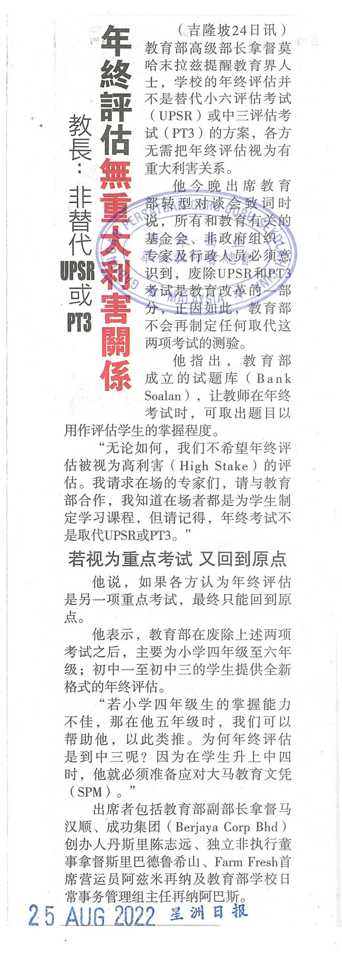 教长:非替代UPSR或PT3 年终评估无重大利害关系 WhatsApp 上一篇文章: 而连突华小工委非法集会上诉案 9月28进行案件管理 上一页 下一篇文章: 班丹中华华小建校进度慢 2024年开学目标不变 下一页