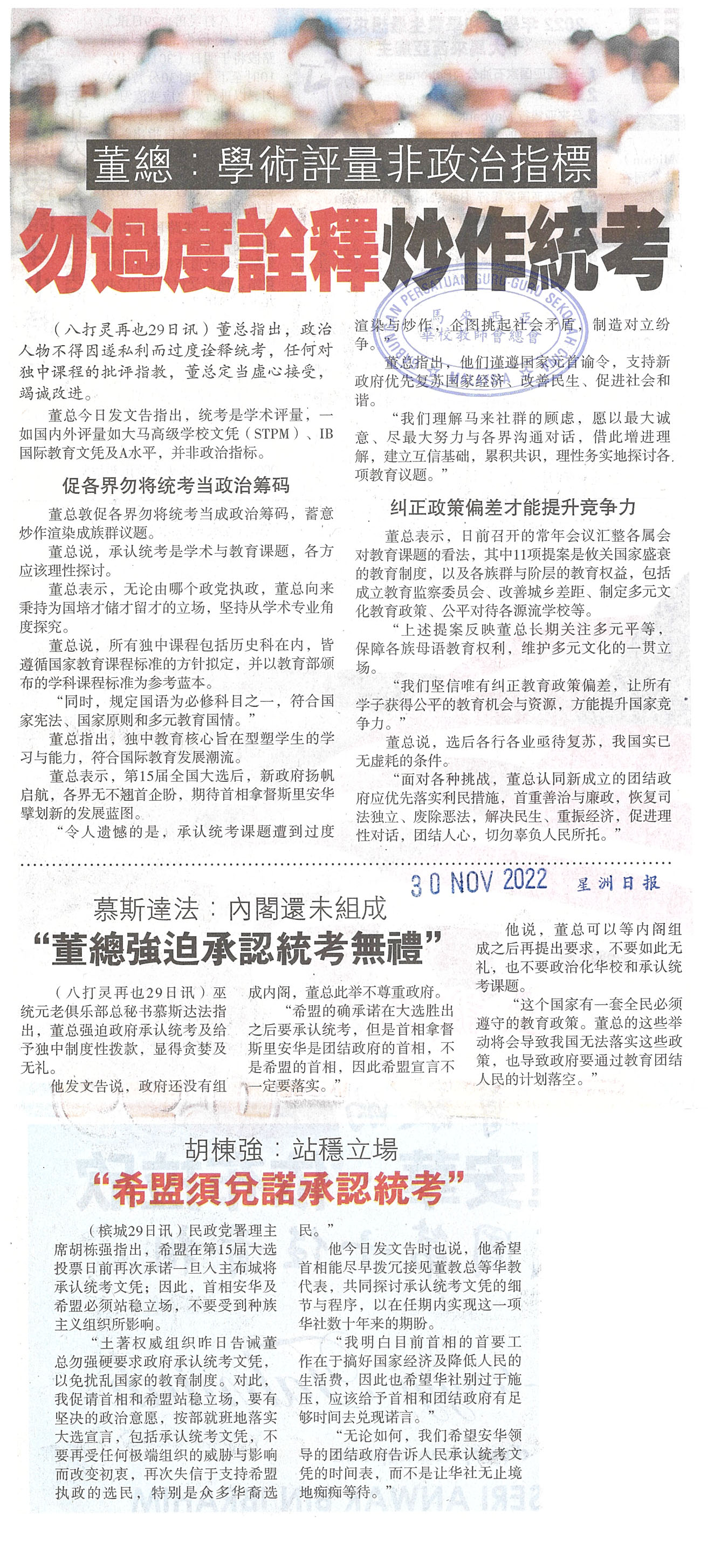 承认统考新闻剪报