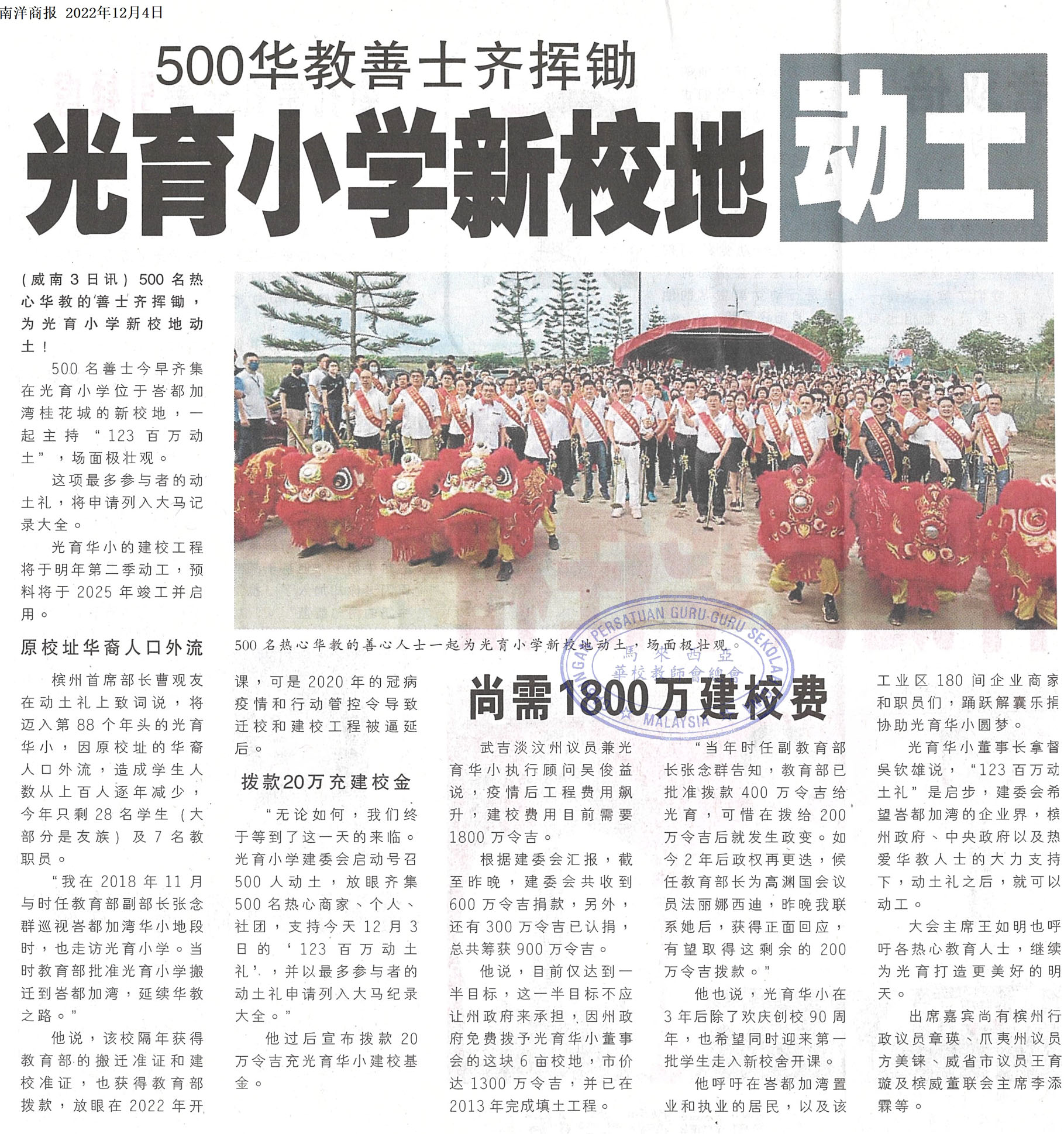 500华教善士齐挥锄 光育小学新校地动土