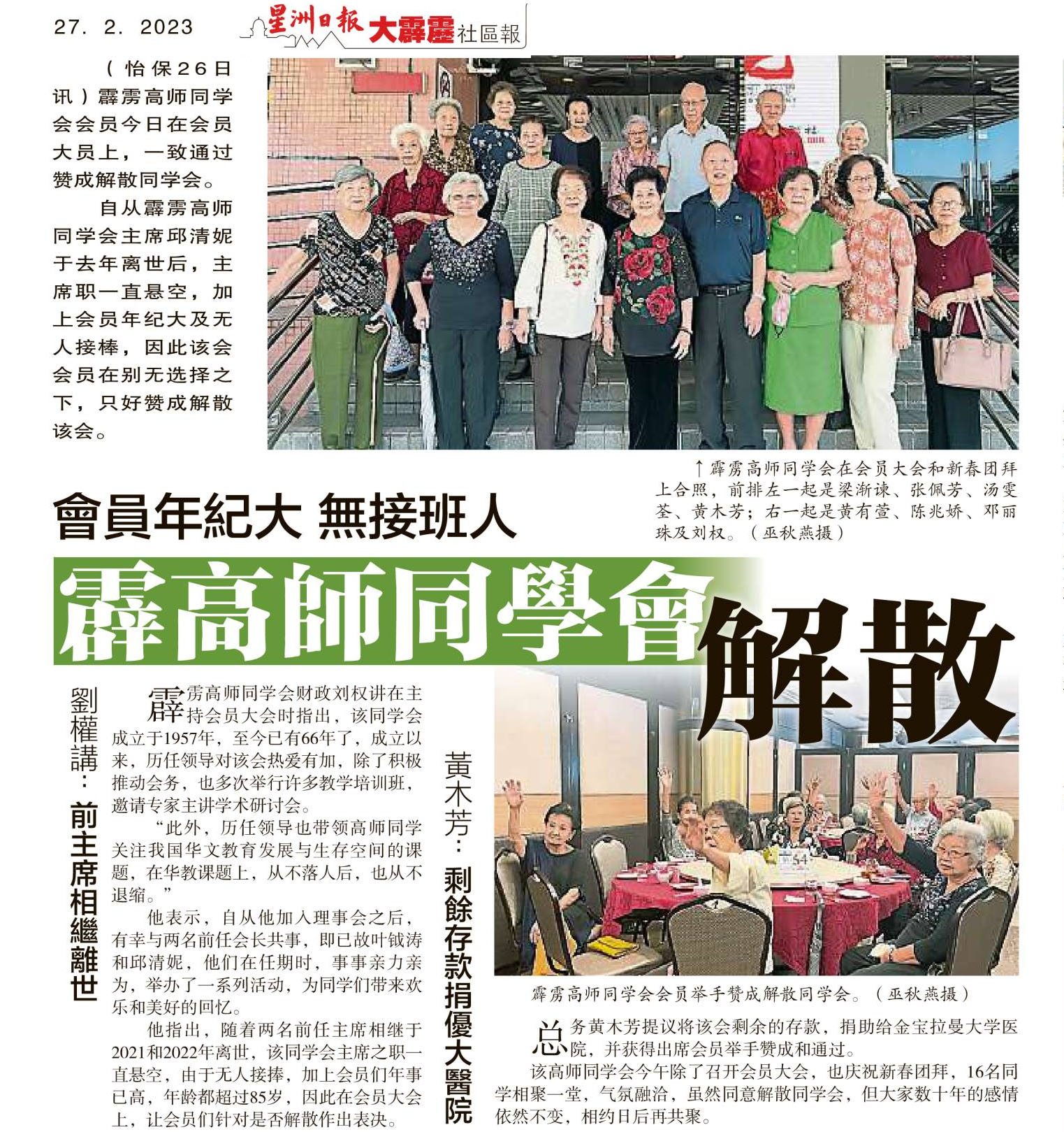 会员年纪大 无接班人 霹高师同学会解散