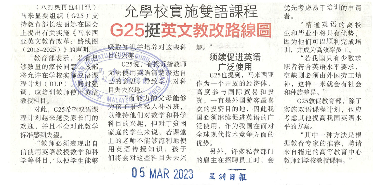 允学校实施双语课程 G25挺英文教改路线图
