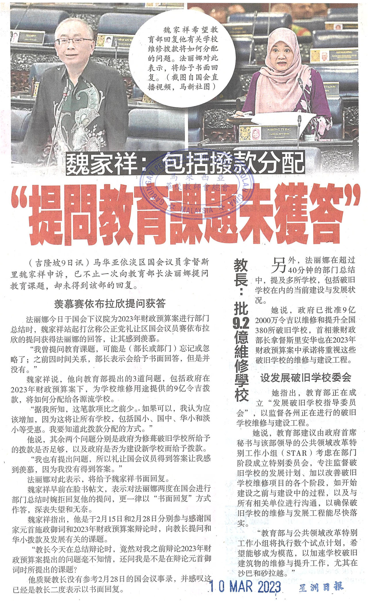 魏家祥:包括拨款分配“提问教育课题未获答”