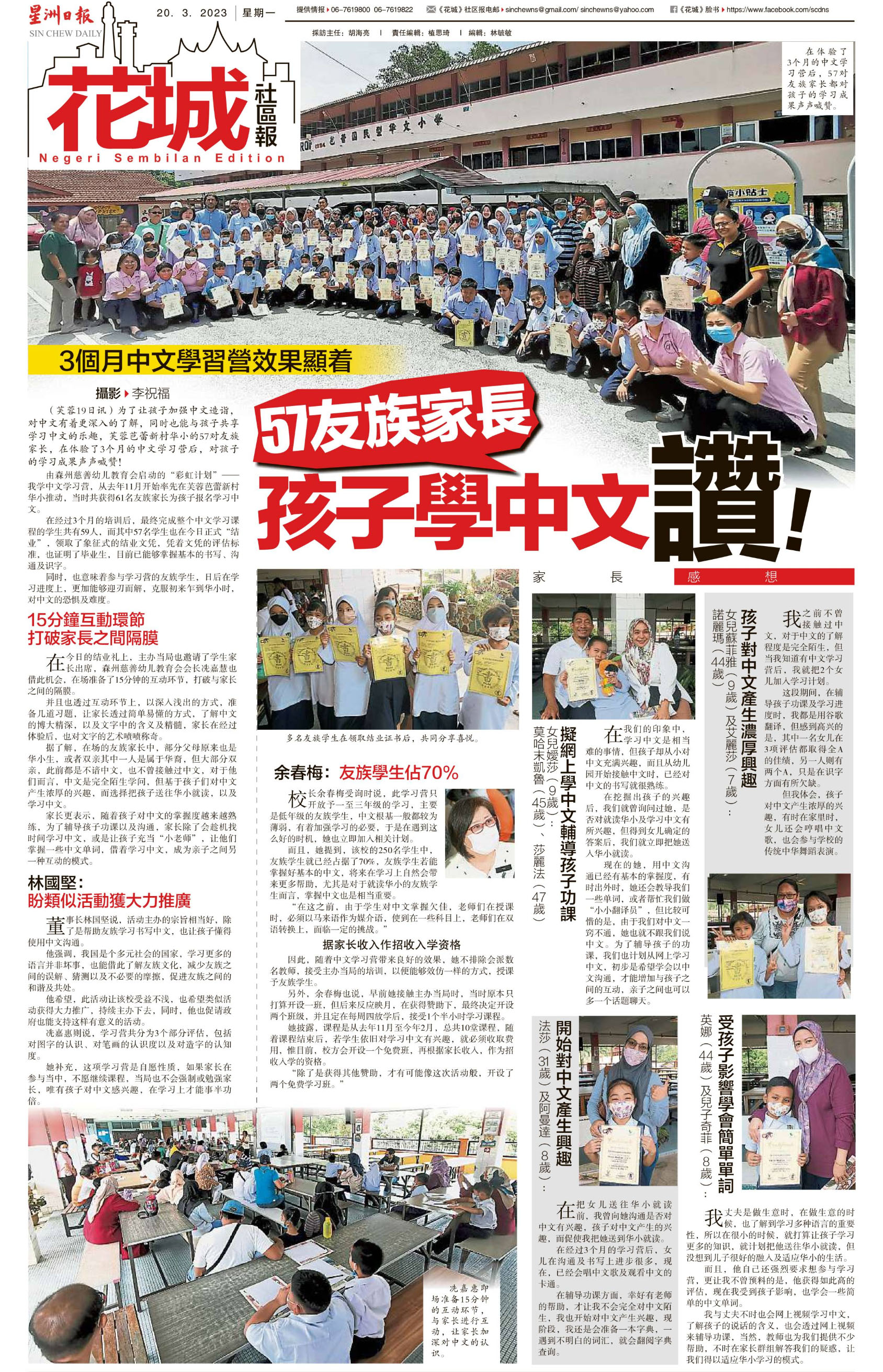 3个月中文学习营效果显着 57友族家长孩子学中文赞
