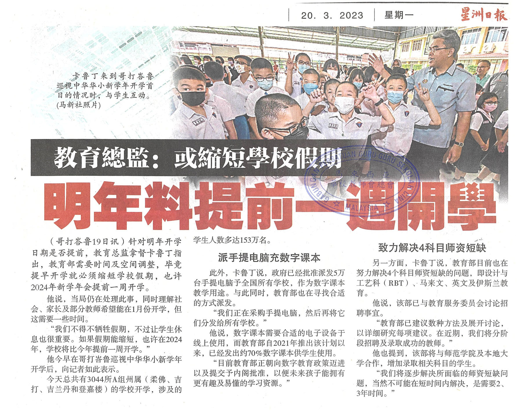 下一篇文章: 4科目师资短缺 教育总监:将展开招聘