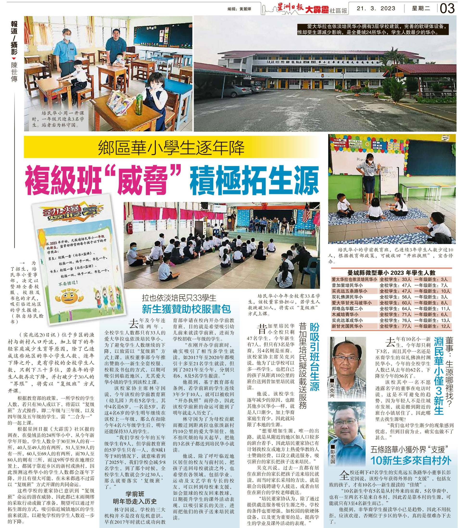 乡区华小学生逐年降 复级班“威胁”积极拓生源