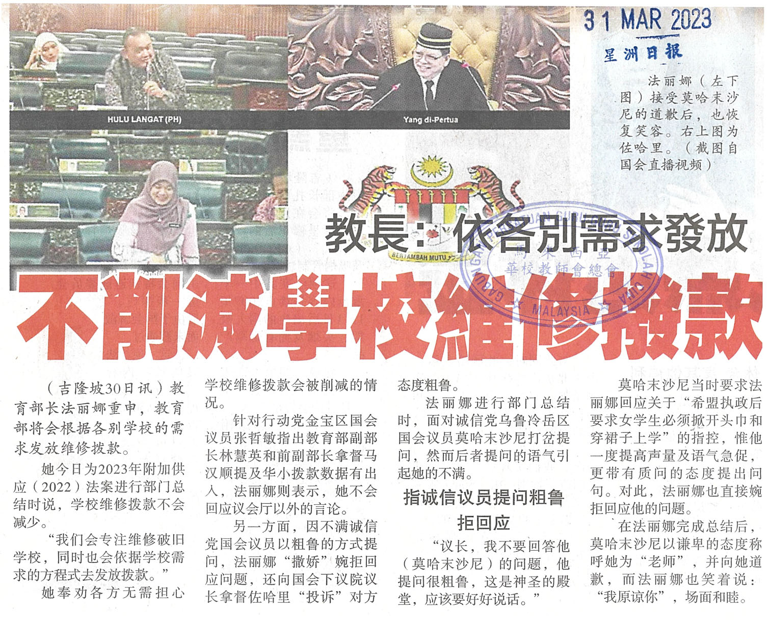 教长:依各别需求发放 不削减学校维修拨款