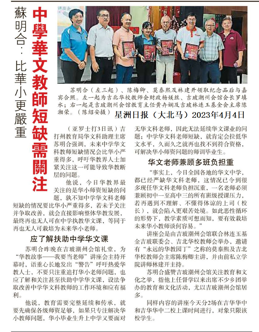 苏明合:比华小更严重 中学华文教师短缺需关注