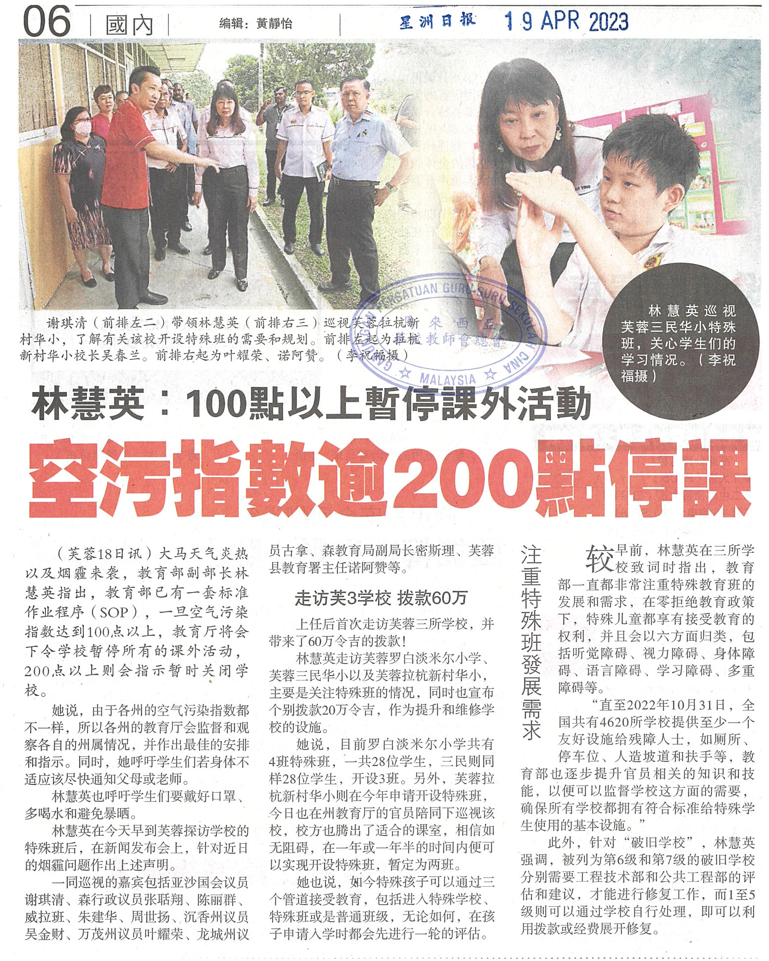 林慧英:100点以上暂停课外活动 空污指数逾200点停课