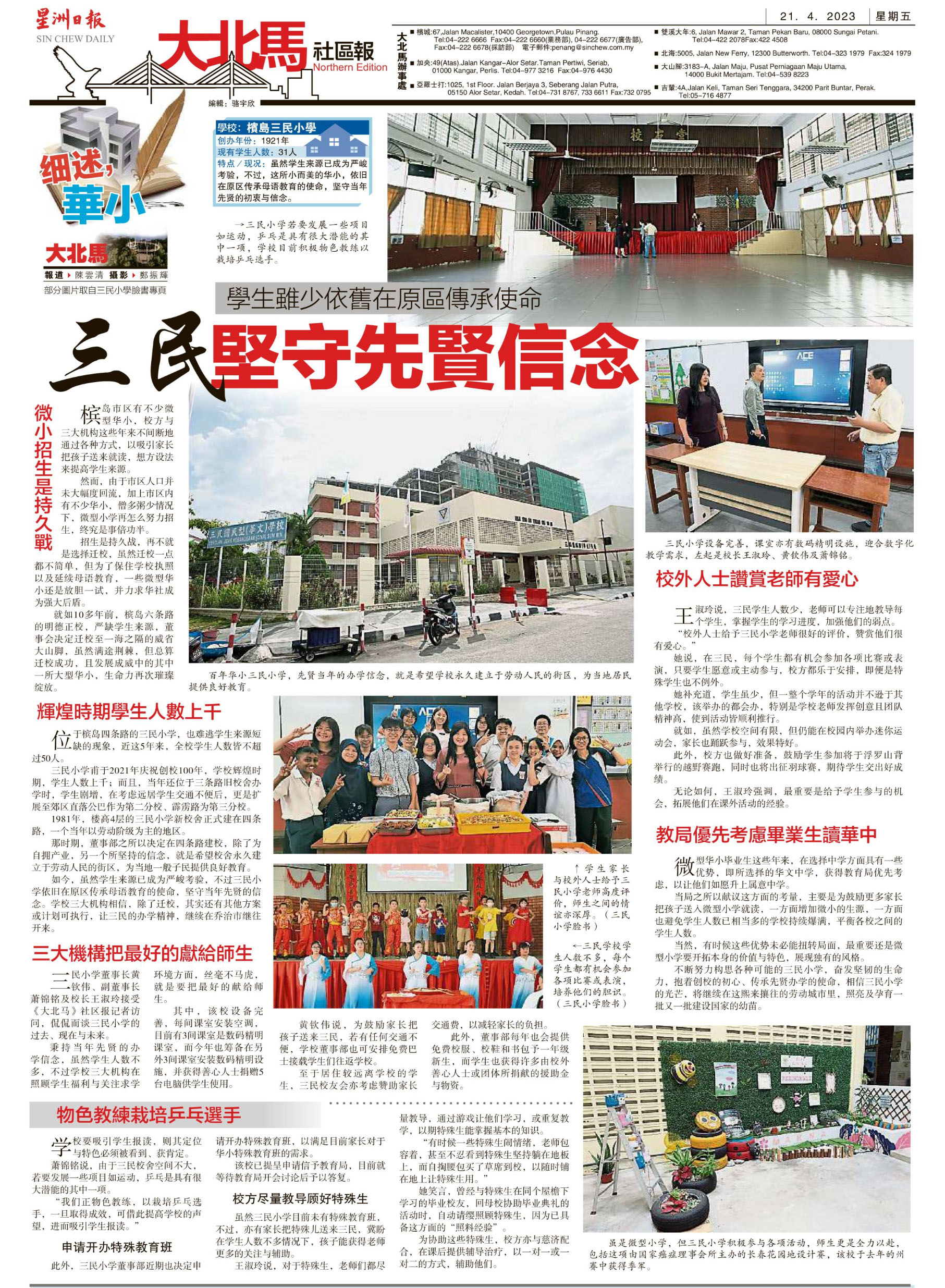学生虽少依旧在原区传承使命 三民华小坚守先贤信念 WhatsApp 上一篇文章: 雪隆董联:华社须正视危机 华中国中师资也短缺 上一页 下一篇文章: 916校庆 实廊中华小学要建新校舍 筹百万发展基金 下一页