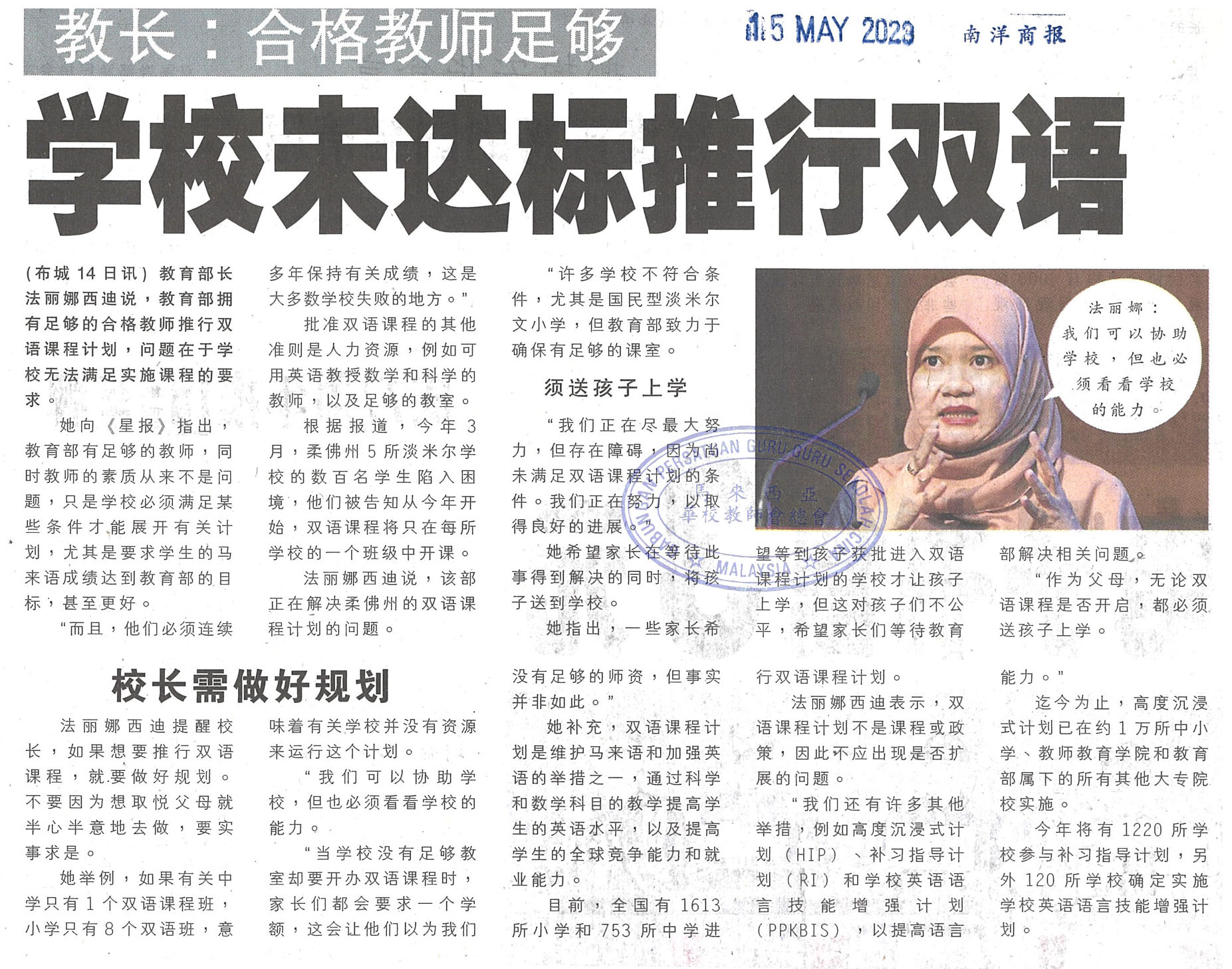 教长:合格教师足够 学校未达标进行双语