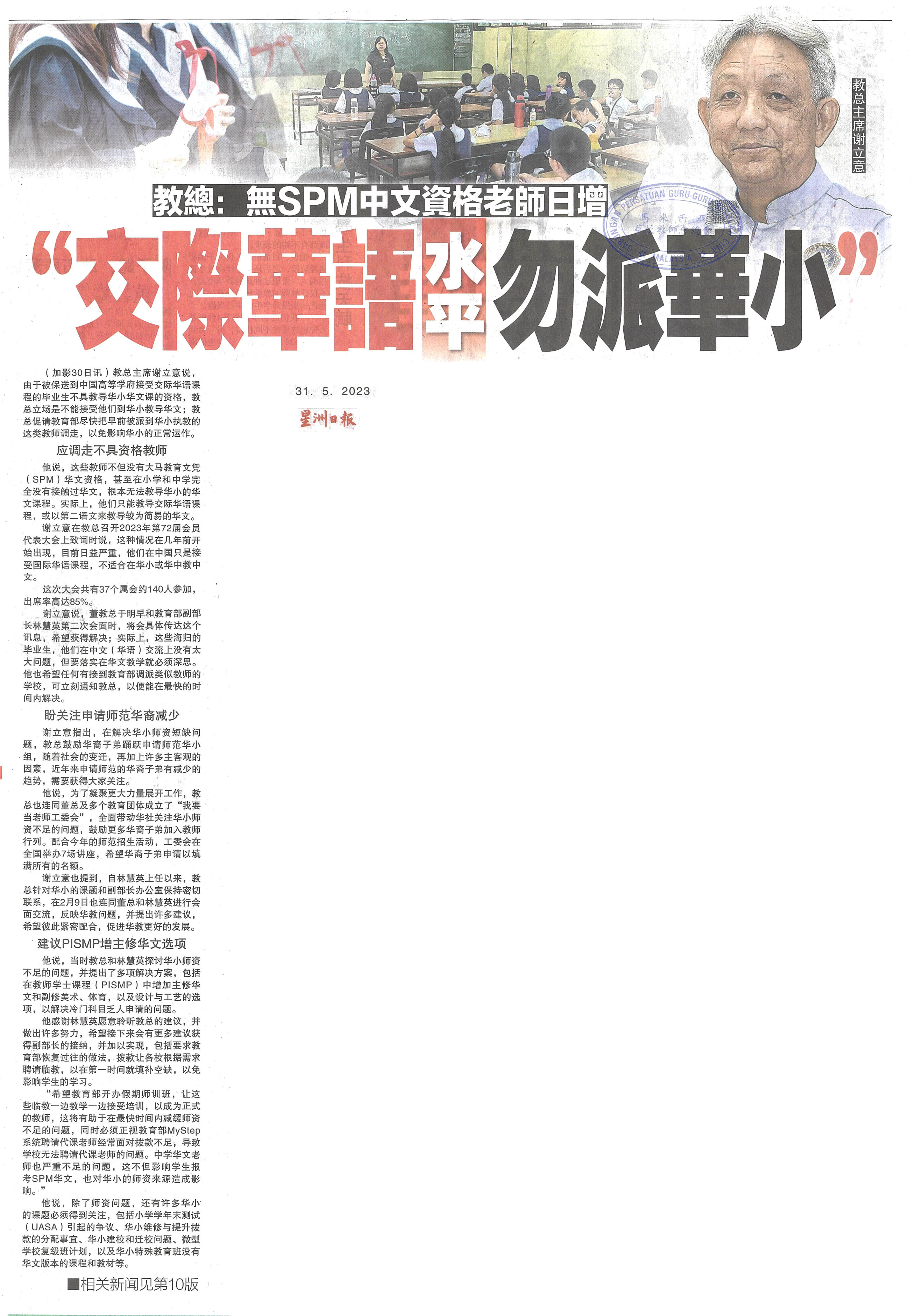 教总:无SPM中文资格老师日增“交际华语水平勿派华小” WhatsApp 上一篇文章: 开班了没老师 公民华小特教学习受阻 上一页 下一篇文章: 热心人赞助 麦小再创先河 机器人”老师“开创新思维 下一页