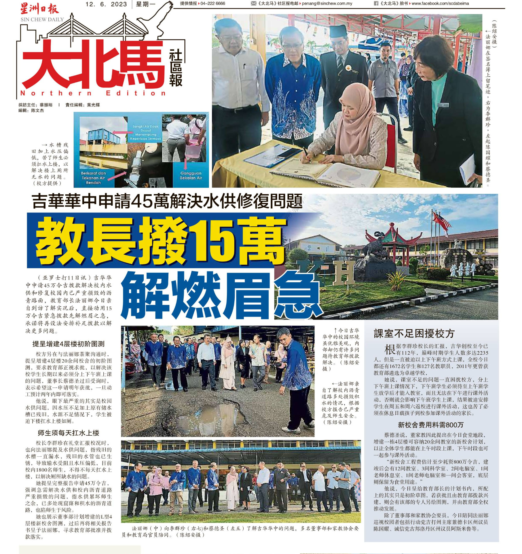 吉华华中申请45万解决水供修复问题 教长拨15万解燃眉急 WhatsApp 上一篇文章: 文德甲中华(一)(二)校百年校庆 逾千人义跑护华教 上一页 下一篇文章: 逾万考生缺考 教长彻查对症下药 下一页