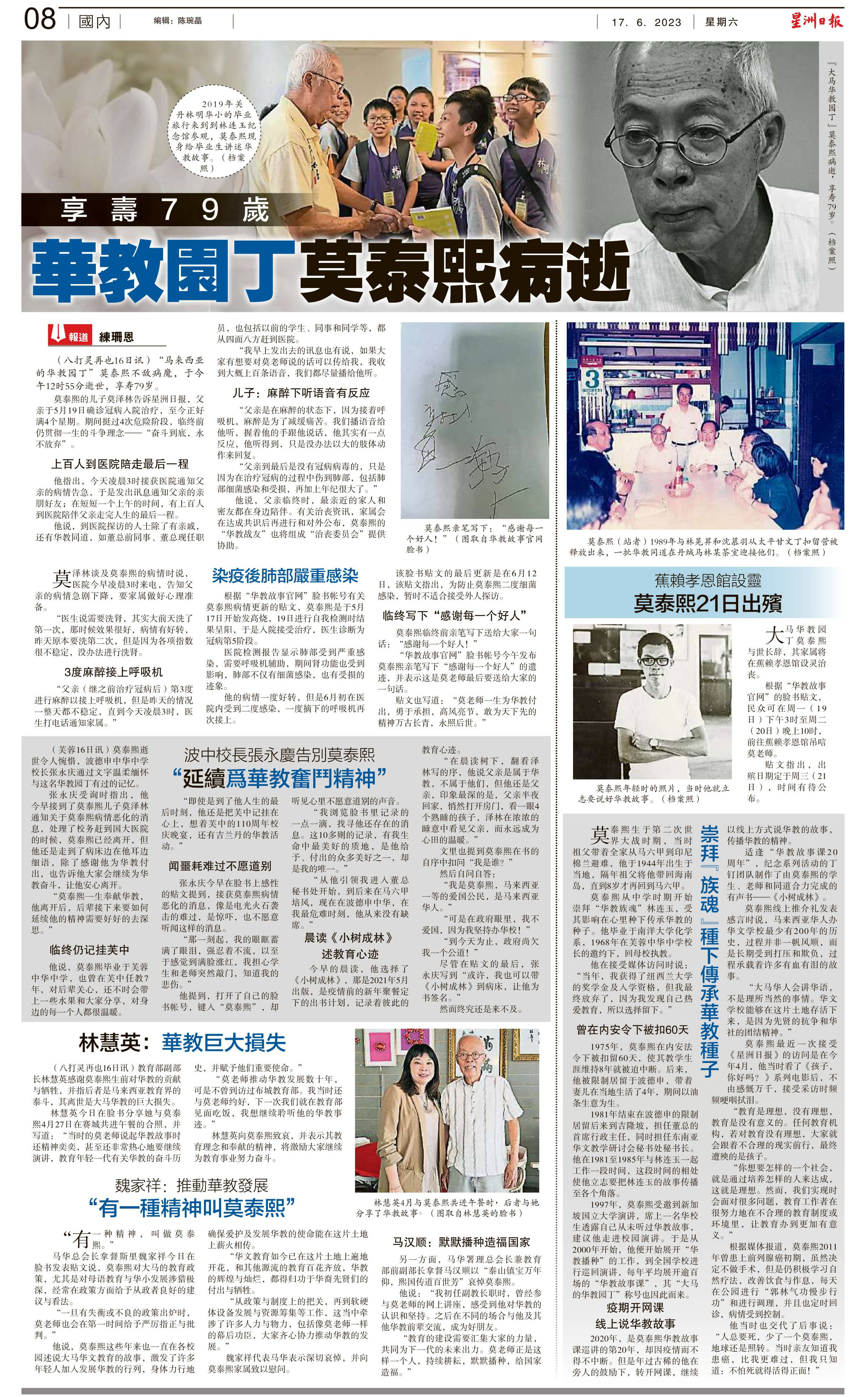 享寿79岁 华教园丁莫泰熙病逝