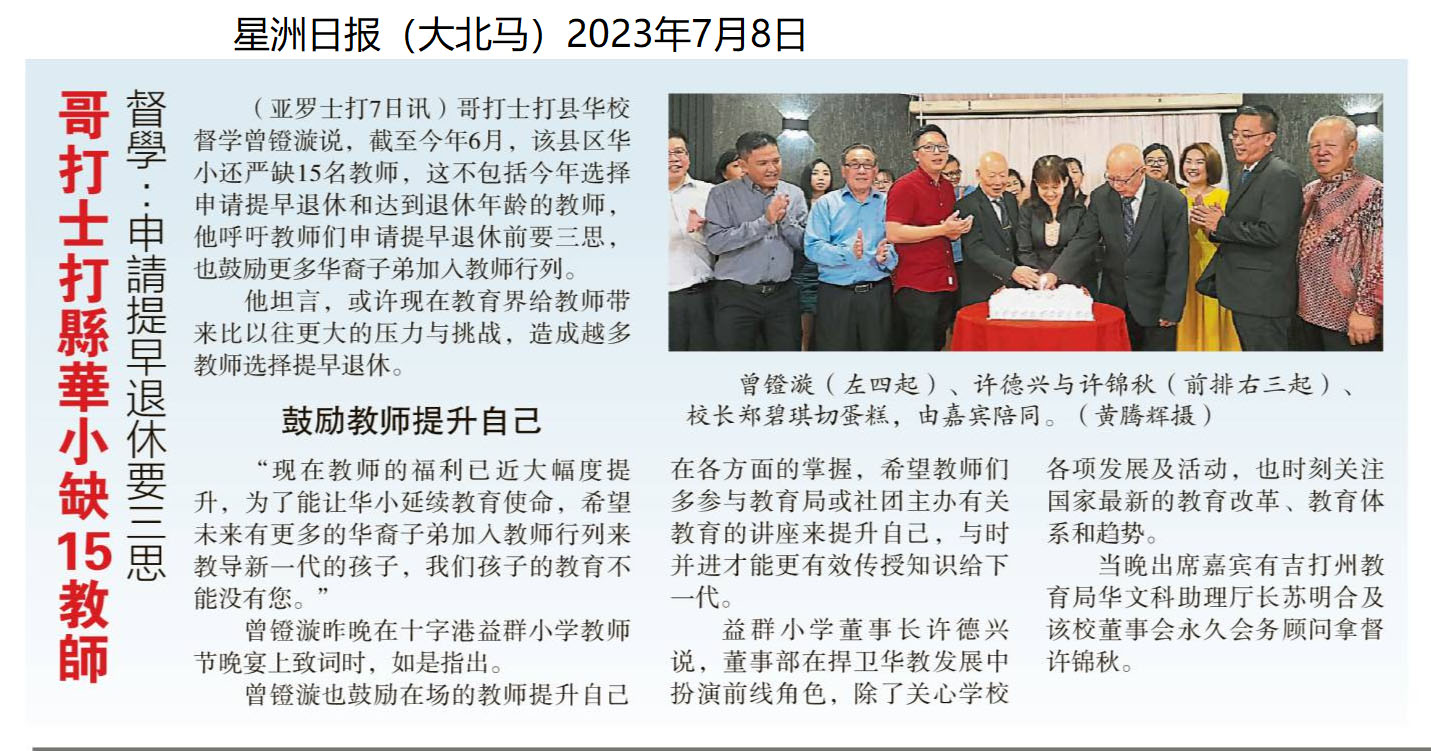 哥打士打县华小缺15教师 督学:申请提早退休要三思