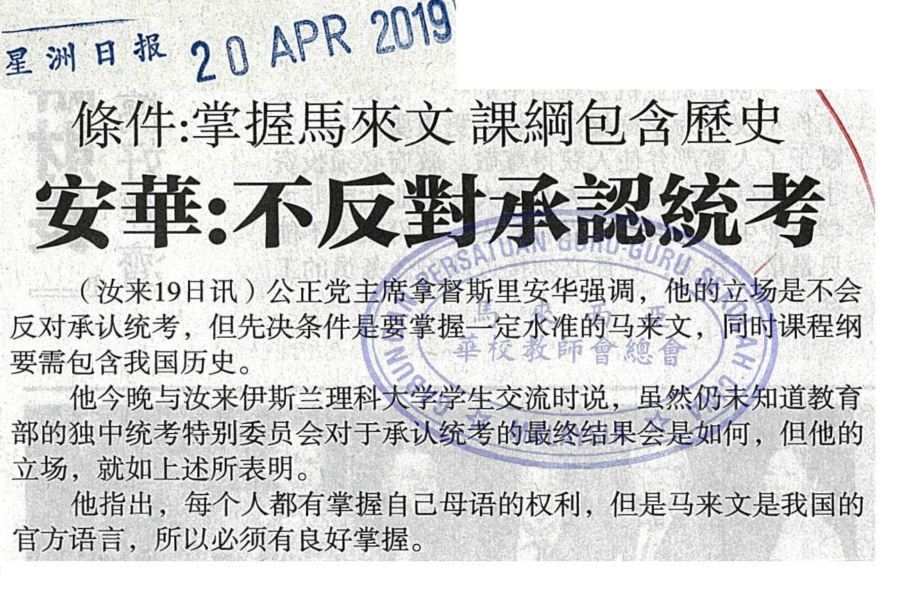 条件:掌握马来文 课纲包含历史 安华:不反对承认统考