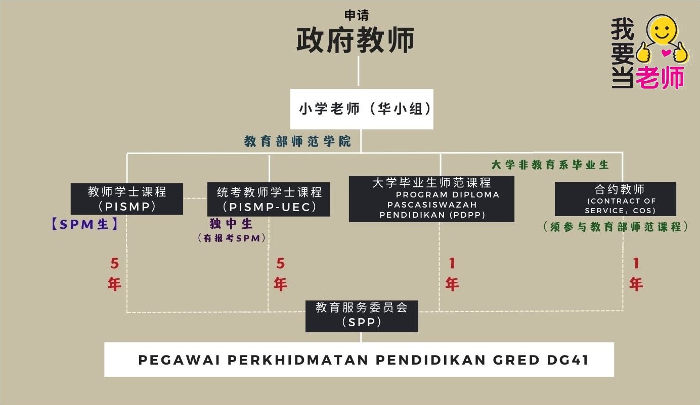 - 近些年来,基于中小学师资短缺问题严重,因此,教育部和教育服务委员会(SPP)也招聘大学毕业生(包括私立大学)成为老师(DG41),其管道如下: