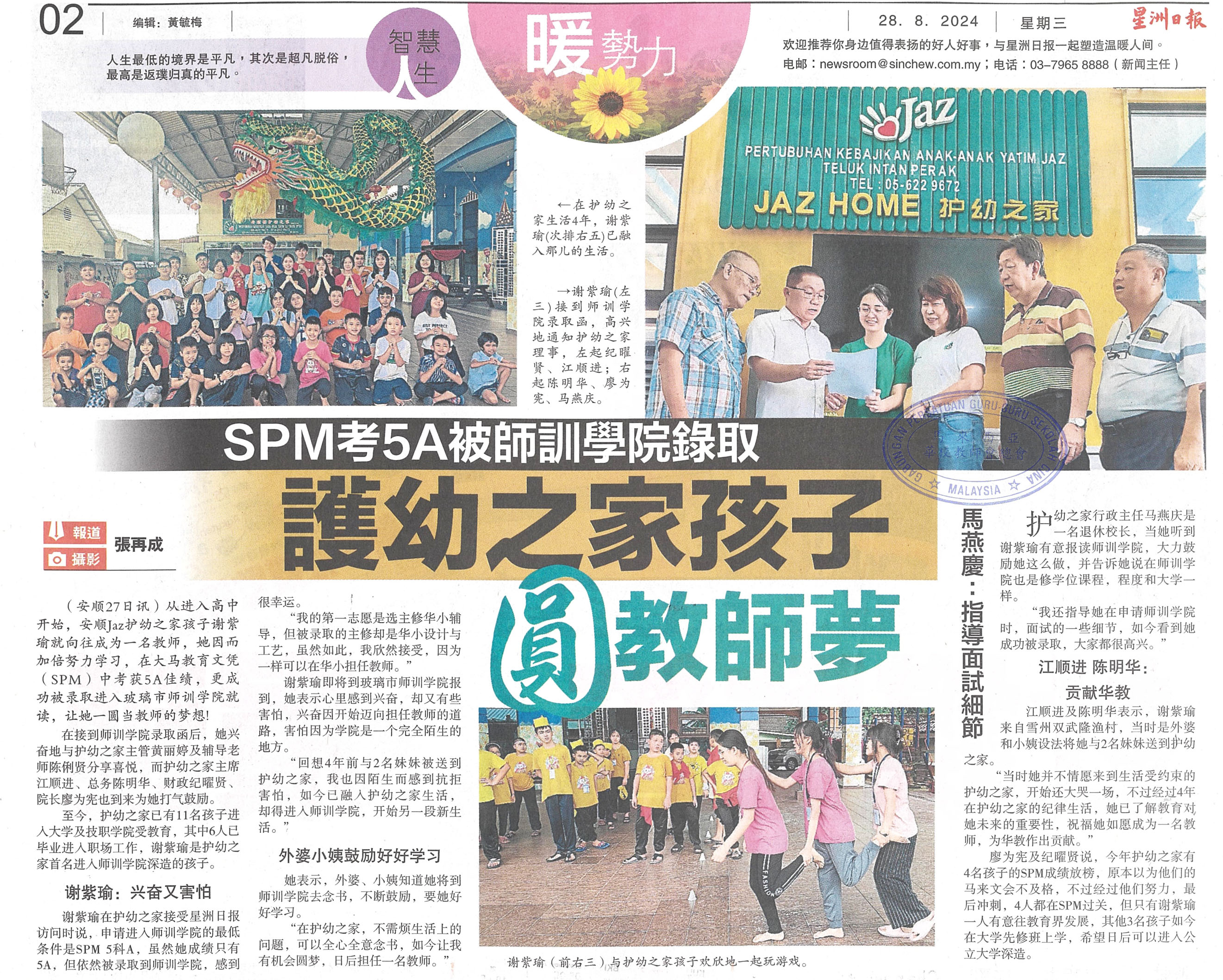 护幼之家孩子SPM考5A被师训学院录取圆教师梦 WhatsApp 上一篇文章: 欢迎大家协助广传 / 2025 PISMP 招生 2月24日至3 月16 日 上一页 下一篇文章: 董荣山:师范华小组华文科仅30名额 主修其他科应珍惜机会 下一页
