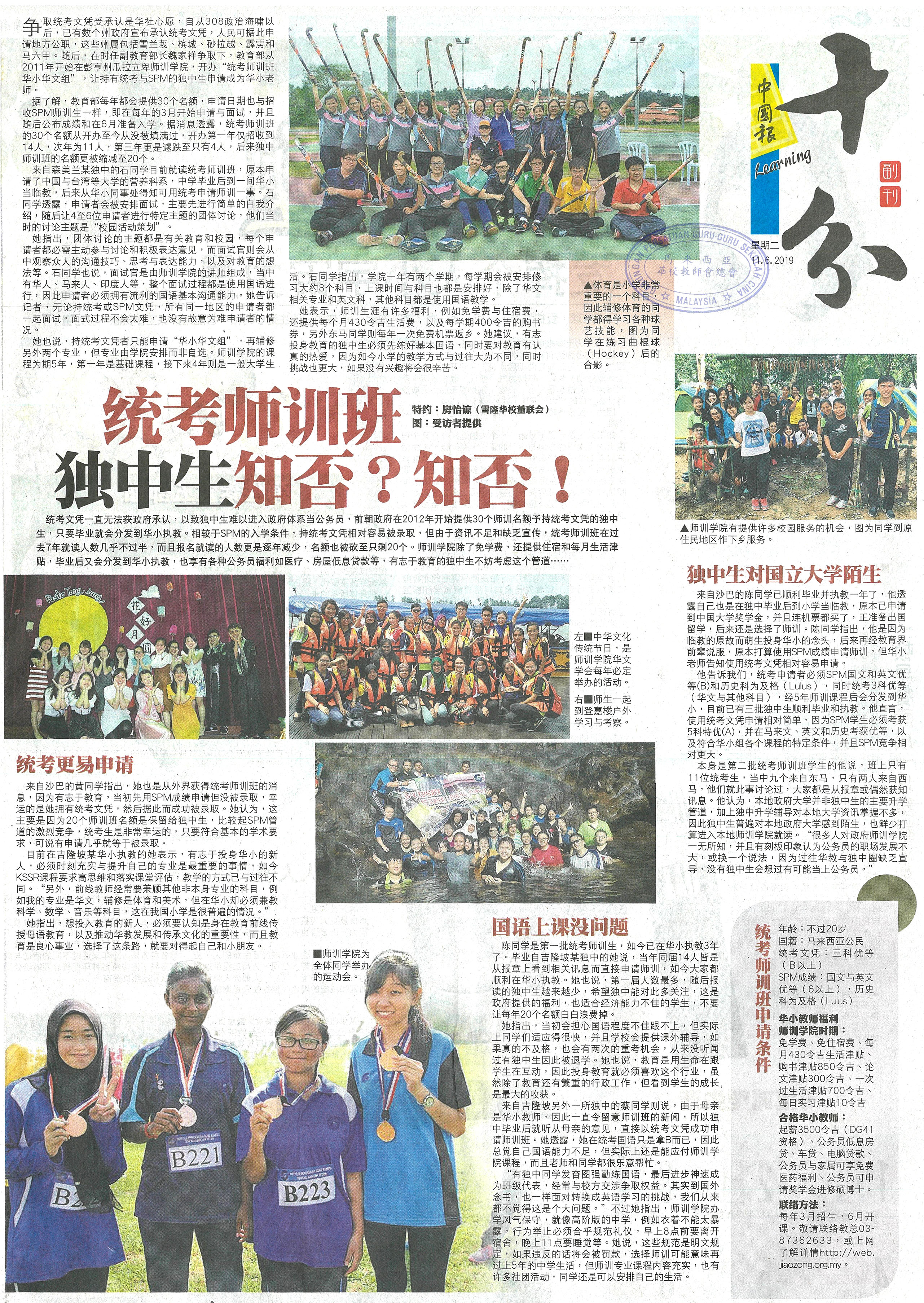 统考师训班 独中生知否?知否!
