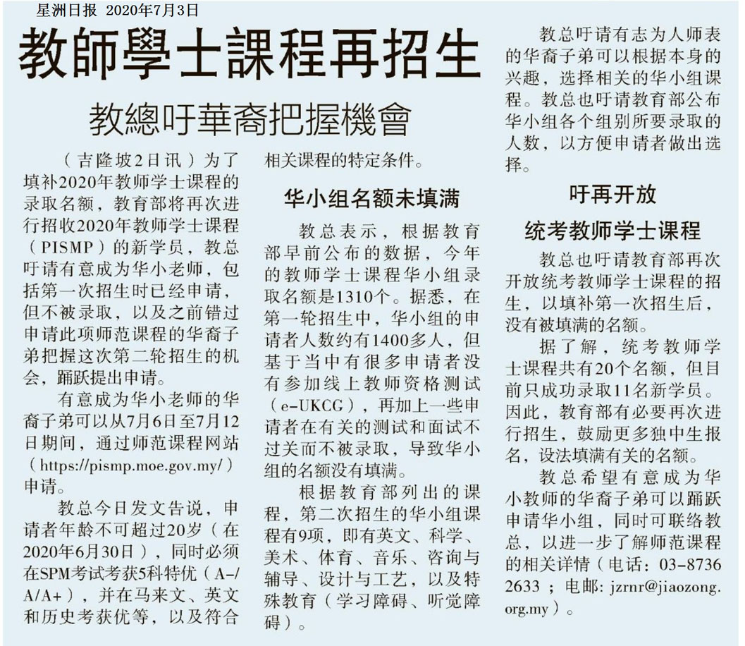 上一篇文章: 呼吁华裔子弟踊跃申请师范课程新闻发布会