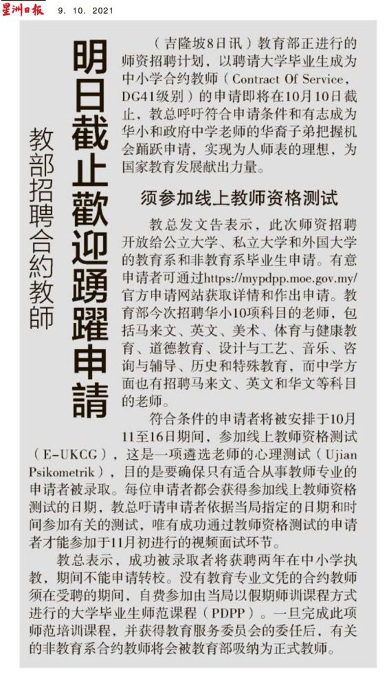 教育部招聘合约教师 明日截止欢迎踊跃申请