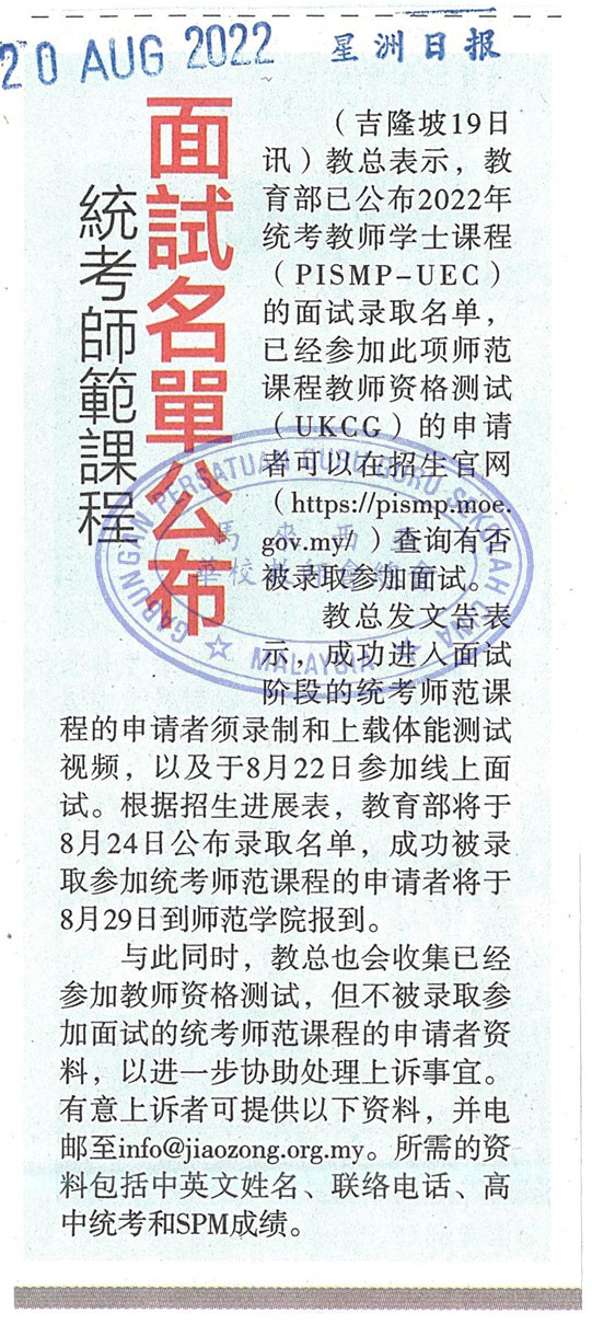 统考师范课程 面试名单公布