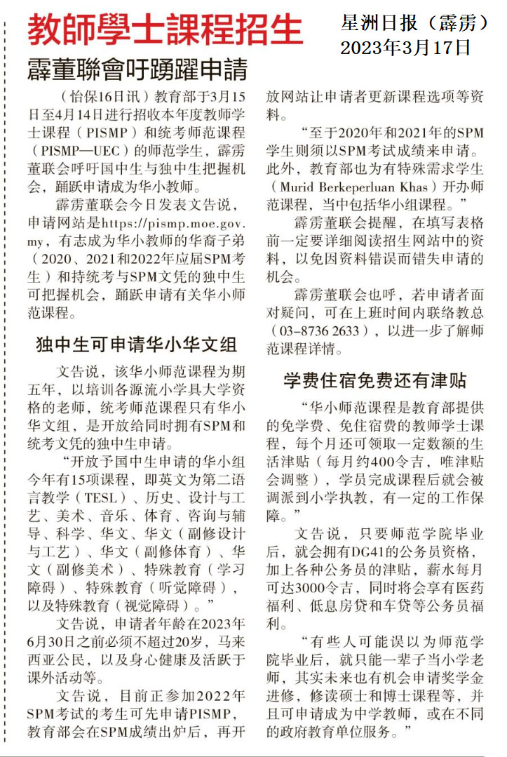 下一篇文章: 国中和独中生受促踊跃申请师范课程