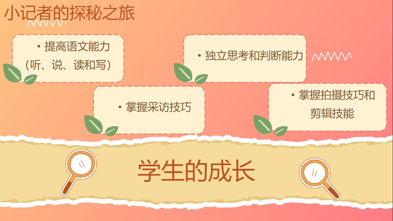 通过这活动也间接提升了学生的语文能力,从聆听受访者的讲述、与他们进行沟通,再到整理内容并撰写稿件,这一系列过程让学生们在听、说、读、写的各个方面都得到了锻炼,培养了他们独立思考和判断内容的能力。