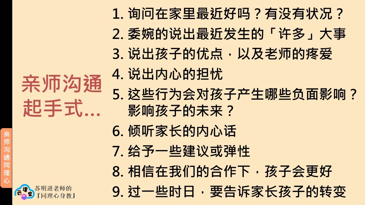 由教总主办,7月21日诚邀深受我国华小老师喜爱的苏明进老师,主讲“同理心身教——线上交心分享会”。