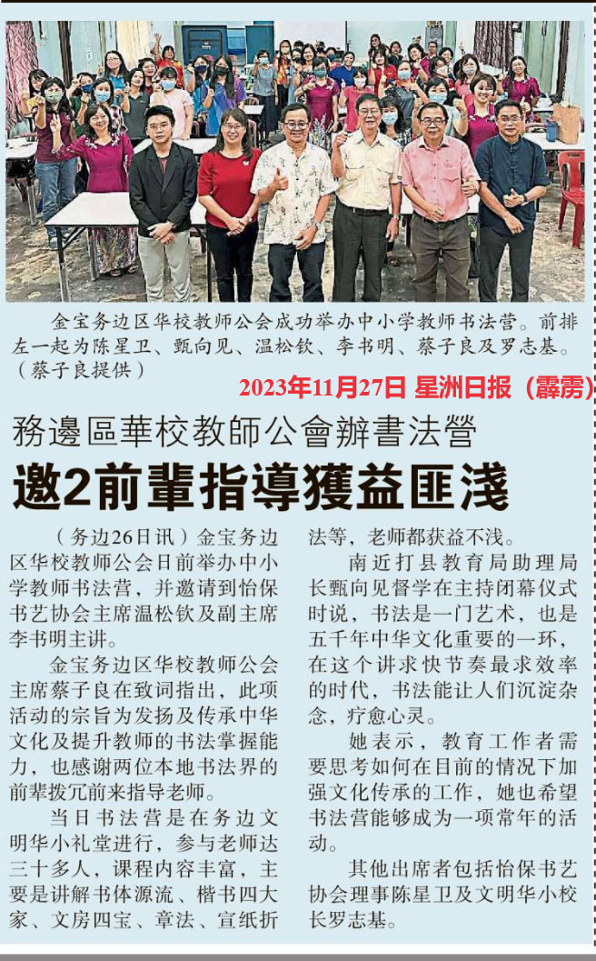 金宝务边区华校教师公会办书法营  邀2前辈指导获益匪浅