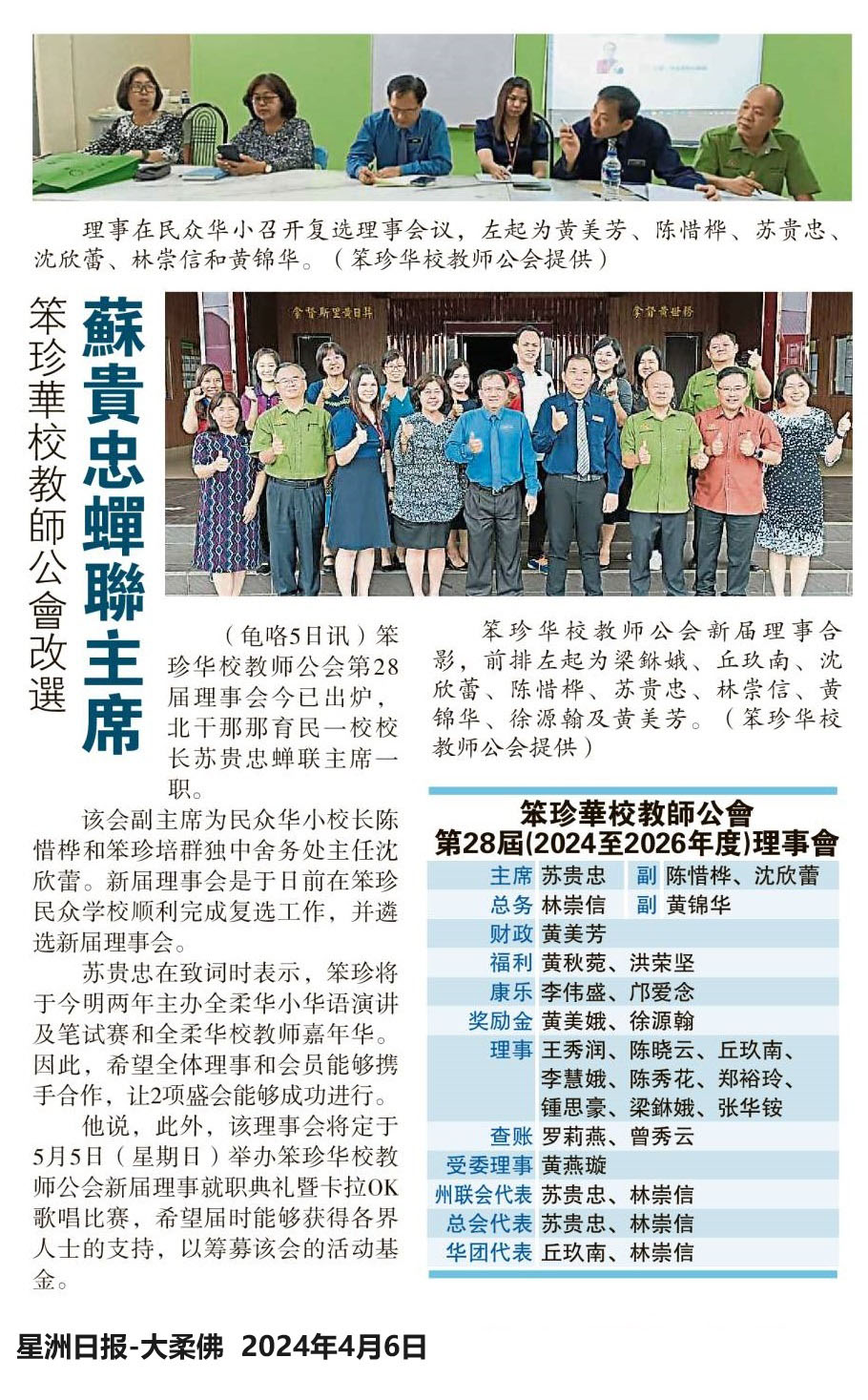 笨珍华校教师公会改选 苏贵忠蝉联主席