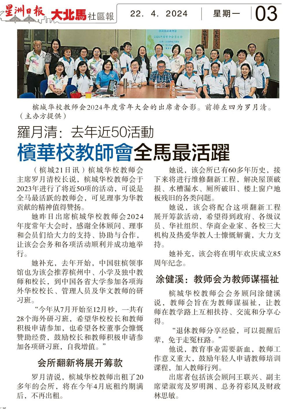 罗月清:去年近50活动 槟华校教师会全马最活跃