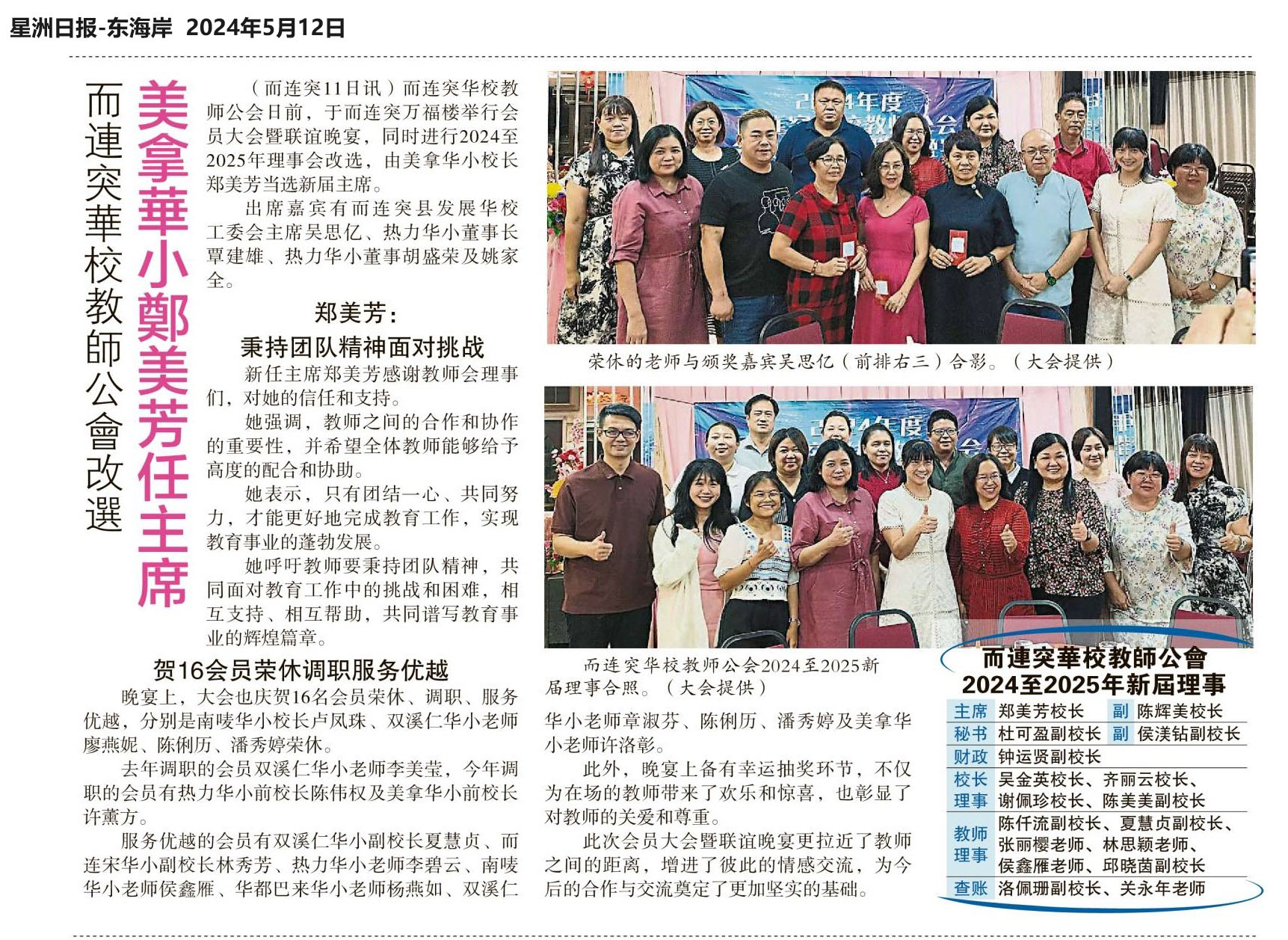 而连突华校教师公会改选 美拿华小郑美芳任主席
