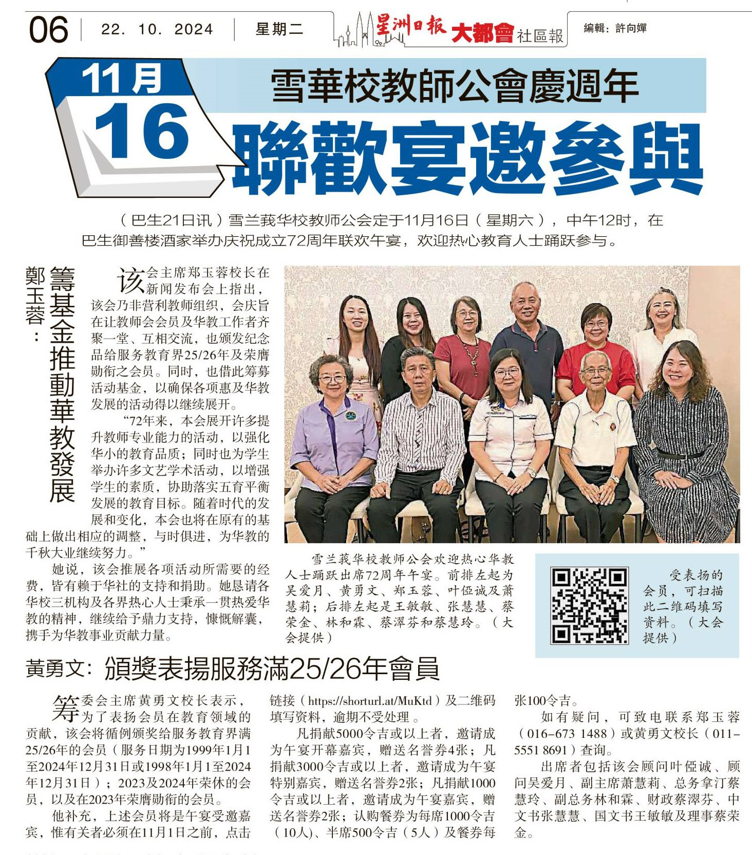 11月16日 雪华校教师公会庆周年联欢宴邀参与