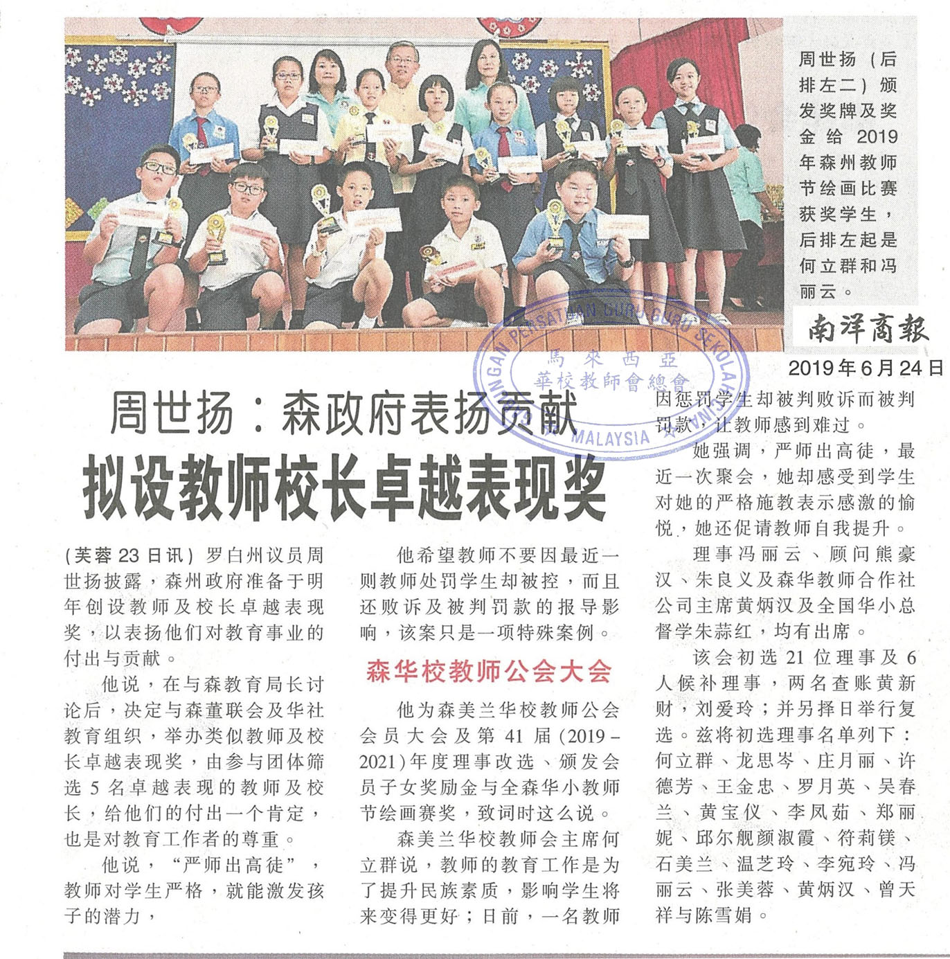 周世扬:森政府表扬贡献 拟设教师校长卓越表现奖
