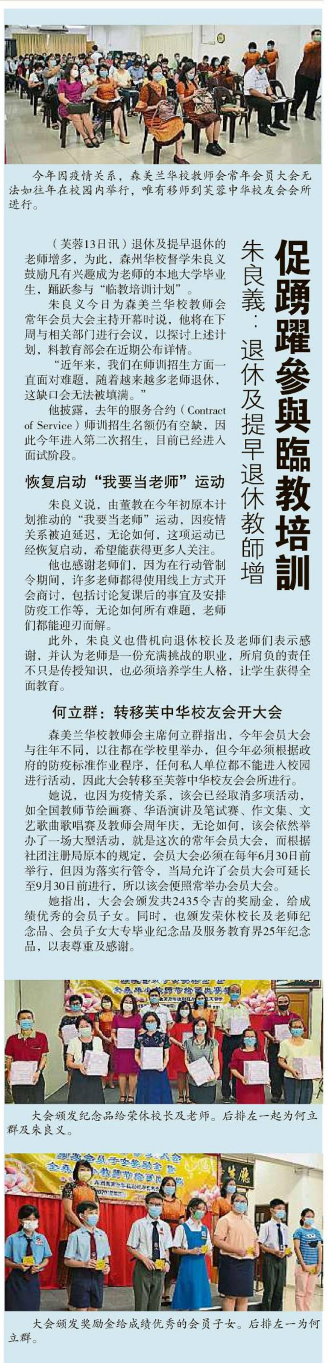 朱良义:退休及提早退休教师增 促踊跃参与临教培训