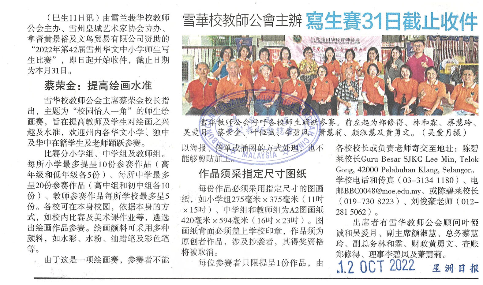 雪华校教师公会主办 写生赛31日截止收件